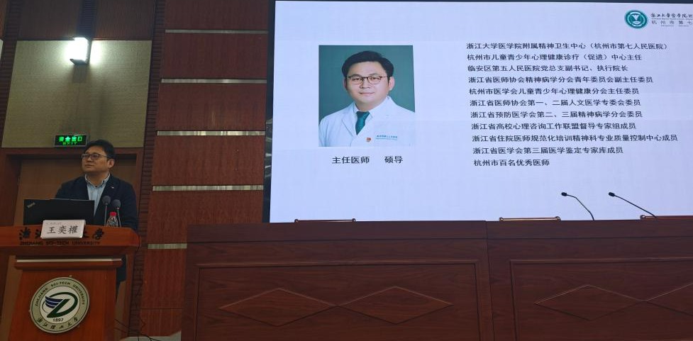 会议还特别邀请杭州市第七人民医院王奕權主任医师作专题辅导报告,他从科研和临床的视角全面剖析大学生心理特点和健康形势,并就校医高质量联动、重点关注学生全程管理、家校医社协同构建学生心理发展支持体系提出有益观点。