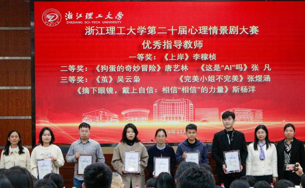 近年来,学校在学生心理健康发展性工作体系构建、健心资源和平台打造等方面探索创新,取得了积极成效,凝练出一批典型经验,在省级和全国平台上荣获多项佳绩。2024年,学校成功举办第四届长三角高校情商教育论坛,全生命周期铸魂情商教育深入推进。学生心理健康社团入选浙江省活力社团,作为共青团中央重点扶植全国百佳社团承办12355巡航护心活动。运动健心特色工作整理形成教学成果并多次交流展示。学校与部队、医院、社区的共建合作进一步拓展,新增心理健康教育、情商教育智库专家8位。2025年度浙江省高校思想政治工作质量提升综合改革与精品建设项目评选中,学校新增入选心理健康教育名师工作室1个;1名教师参加浙江省高校首届心理健康微课大赛荣获二等奖;1件作品荣获第七届全国心理情景剧大赛一等奖,2件作品入选第三届全国高校百佳心理微电影(心理短视频);2名心理委员入选全国百佳心理委员风采展。会上,进行了2024年心理育人贡献表彰,学生心理健康教育工作领导小组成员为一年来作出积极贡献的老师们颁奖。