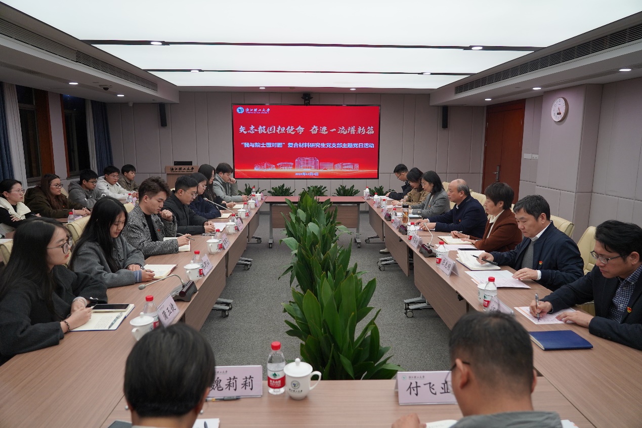 课后,陈文兴所联系的材料科学与工程学院复合材料研究生党支部举办了以“矢志报国担使命 奋进一流谱新篇”为主题的“我与院士面对面”座谈会暨主题党日活动。活动由材料科学与工程学院党委书记仰滢主持。