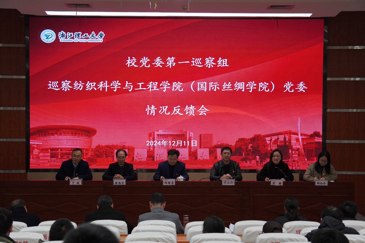 校党委第一巡察组全体成员、巡察办公室负责人,纺织科学与工程学院(国际丝绸学院)全体教职工、近五年调离或退出党政班子的成员参加反馈会。