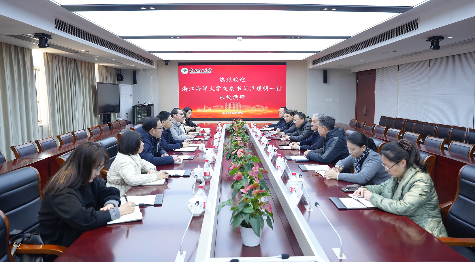 12月20日,浙江海洋大学纪委书记卢理明一行来校调研。校纪委书记陈正奎陪同参观并出席调研座谈会。