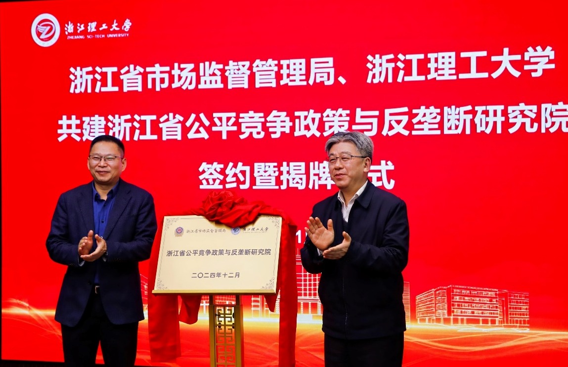 1月13日下午,浙江省公平竞争政策与反垄断研究院签约暨揭牌仪式在mk官方网站_mk(中国)临平校区举行。浙江省市场监督管理局党委委员、副局长顾文海,我校副校长周必彧出席揭牌仪式。
