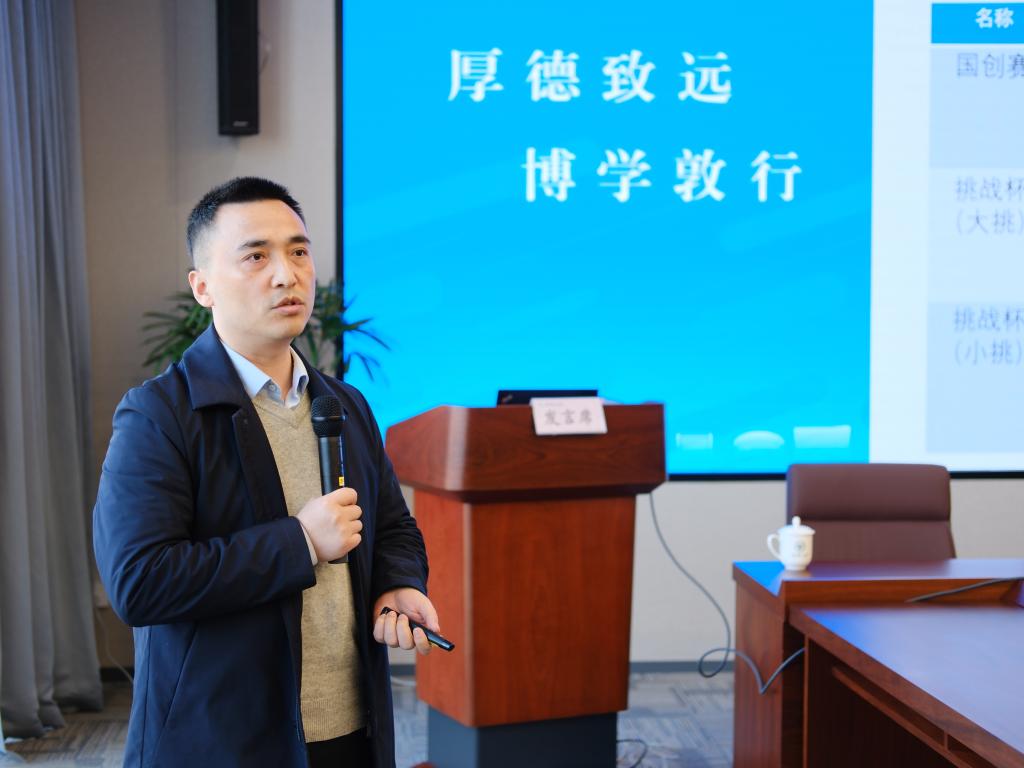 会上,学工部、创业学院,团委,招就处负责人分别对我校往届国创赛、挑战杯和职规赛竞赛组织开展情况进行梳理总结,并对学校2025年大赛有关工作作了安排部署。相关学院赛事负责人作了交流发言,分享了学院推进竞赛工作的有效做法和经验成效,以及指导学生参与竞赛的收获体会。