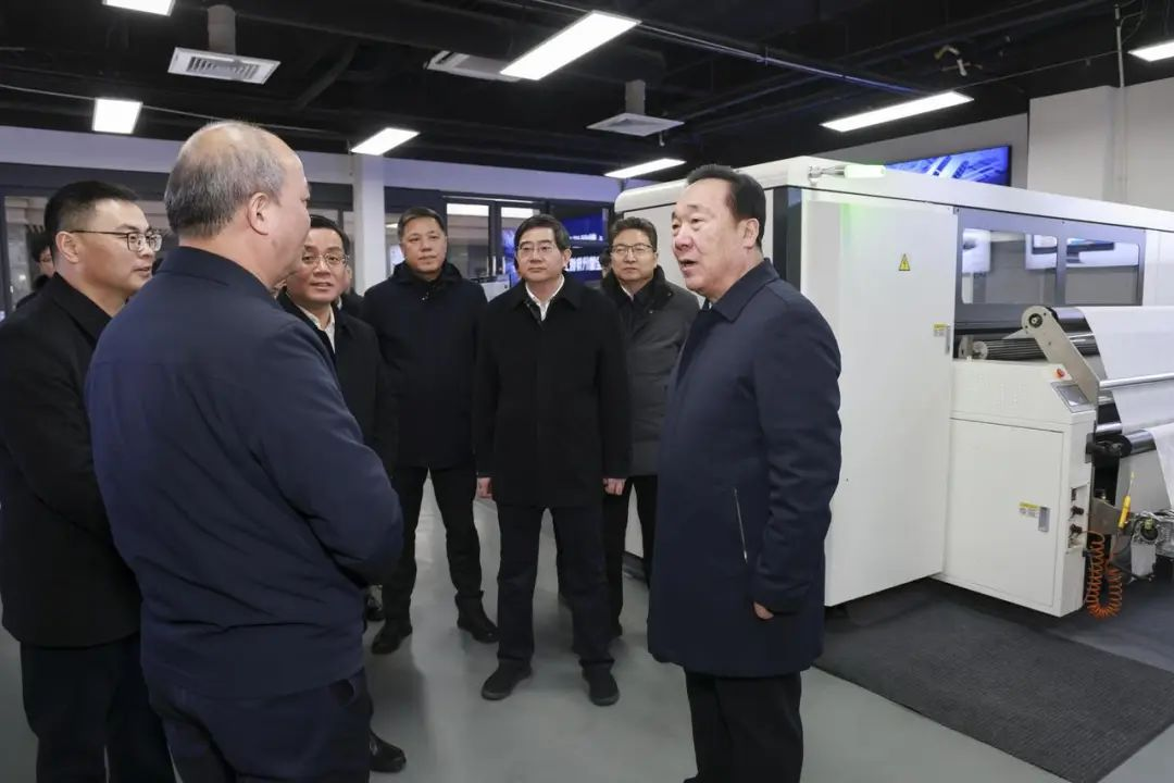在浙江省现代纺织技术创新中心,王浩考察技术验证中心、时尚创意工坊,详细了解中心建设运行和服务纺织产业转型升级等情况。