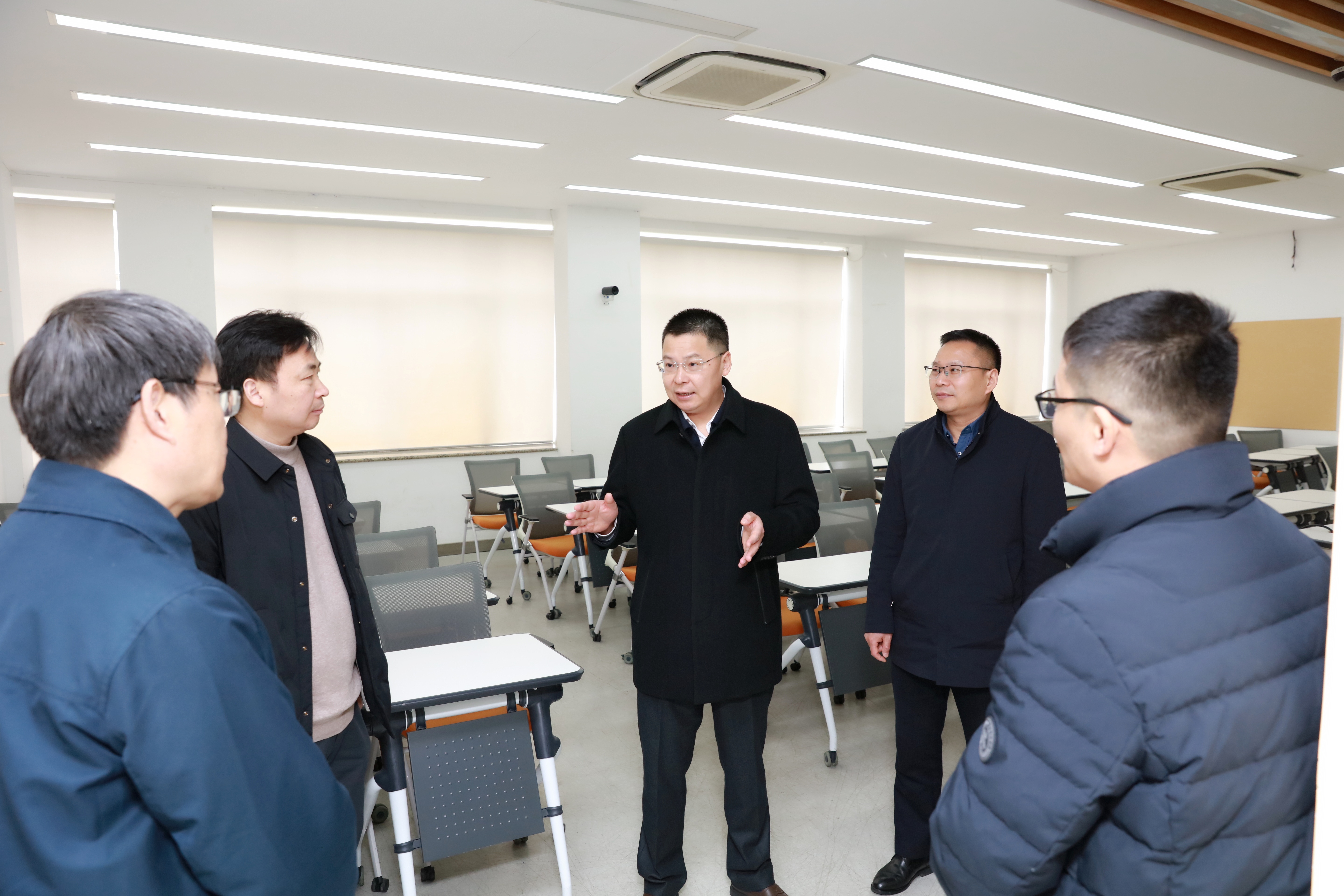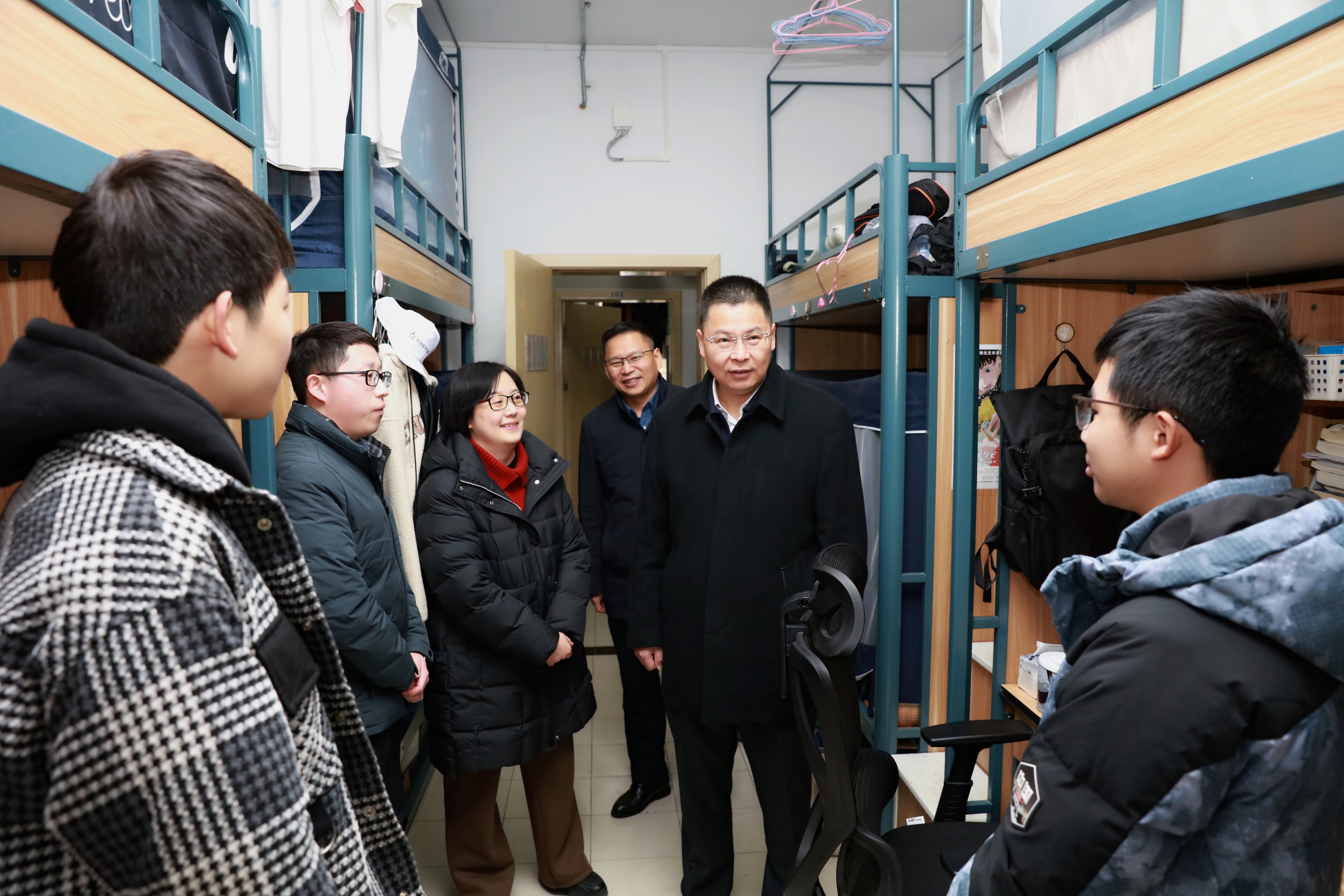 为确保新学期各项工作平稳有序开展,2月19日下午,校党委书记赵全军带队开展新学期开学准备工作专项检查指导,校党委委员、副校长周必彧、陈爱喜陪同检查。