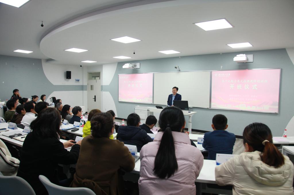 教师发展中心、人事处、教务处、国际交流合作处、外国语学院负责人以及授课教师代表出席活动。来自杭州电子科技大学、浙江工商大学、浙江中医药大学、浙江财经大学、浙江海洋大学、嘉兴大学等13所院校及我校的老师等40位学员参加了开班仪式。开班仪式结束后,现场以“有效实施全英文授课的策略与技巧”为主题开启培训班第一课。