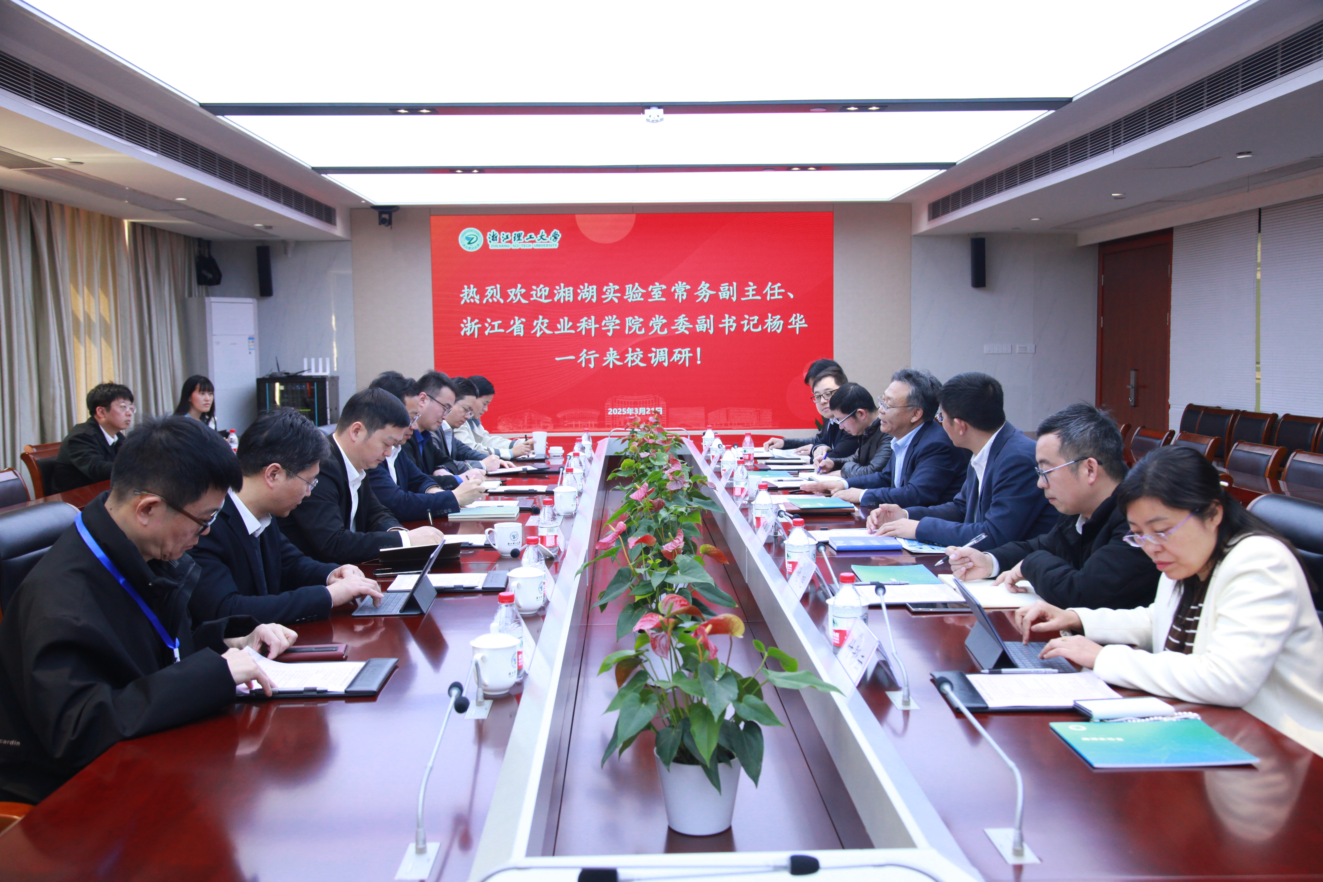 3月21日上午,湘湖实验室常务副主任、浙江省农业科学研究院党委副书记杨华一行来访我校,重点洽谈农业科技成果转化与高端人才联合培养事宜,就科研合作、人才培养、成果转化等问题开展调研交流。