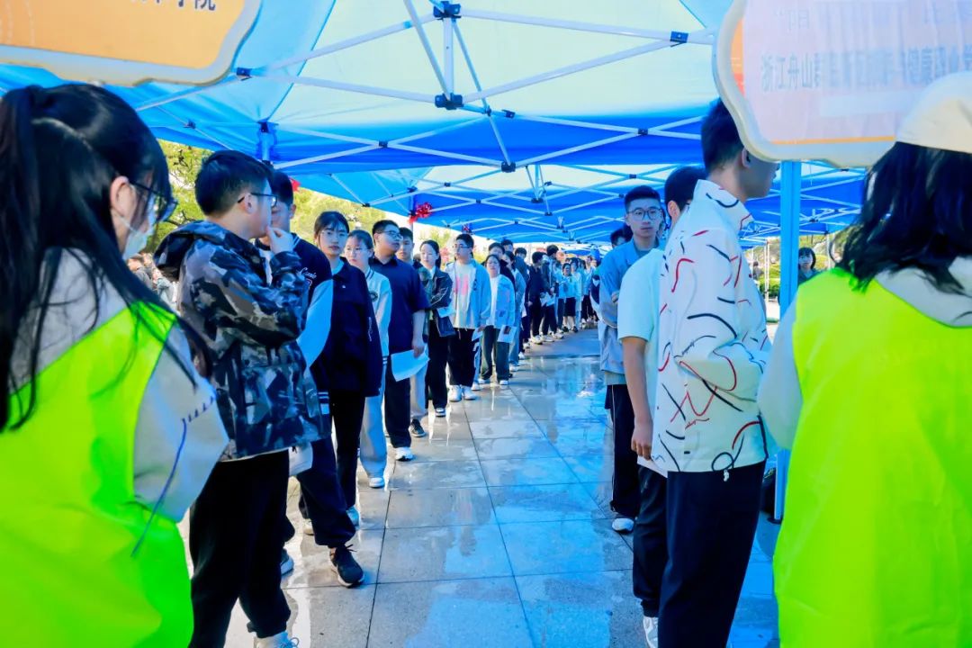 今年学校“三位一体”招生计划400人,报名人数18000余人,经审核,5800余名考生通过初审获得来校测试资格。上午7:00不到,下沙校区2号楼前已涌动起青春的热浪。虽然当天刮风下雨、气温骤降,却丝毫未影响考生们的热情。考生们手持准考证,眼神中满是期待与笃定,在志愿者的悉心引导下,有条不紊地分批踏入考区,向着梦想的方向坚定前行。