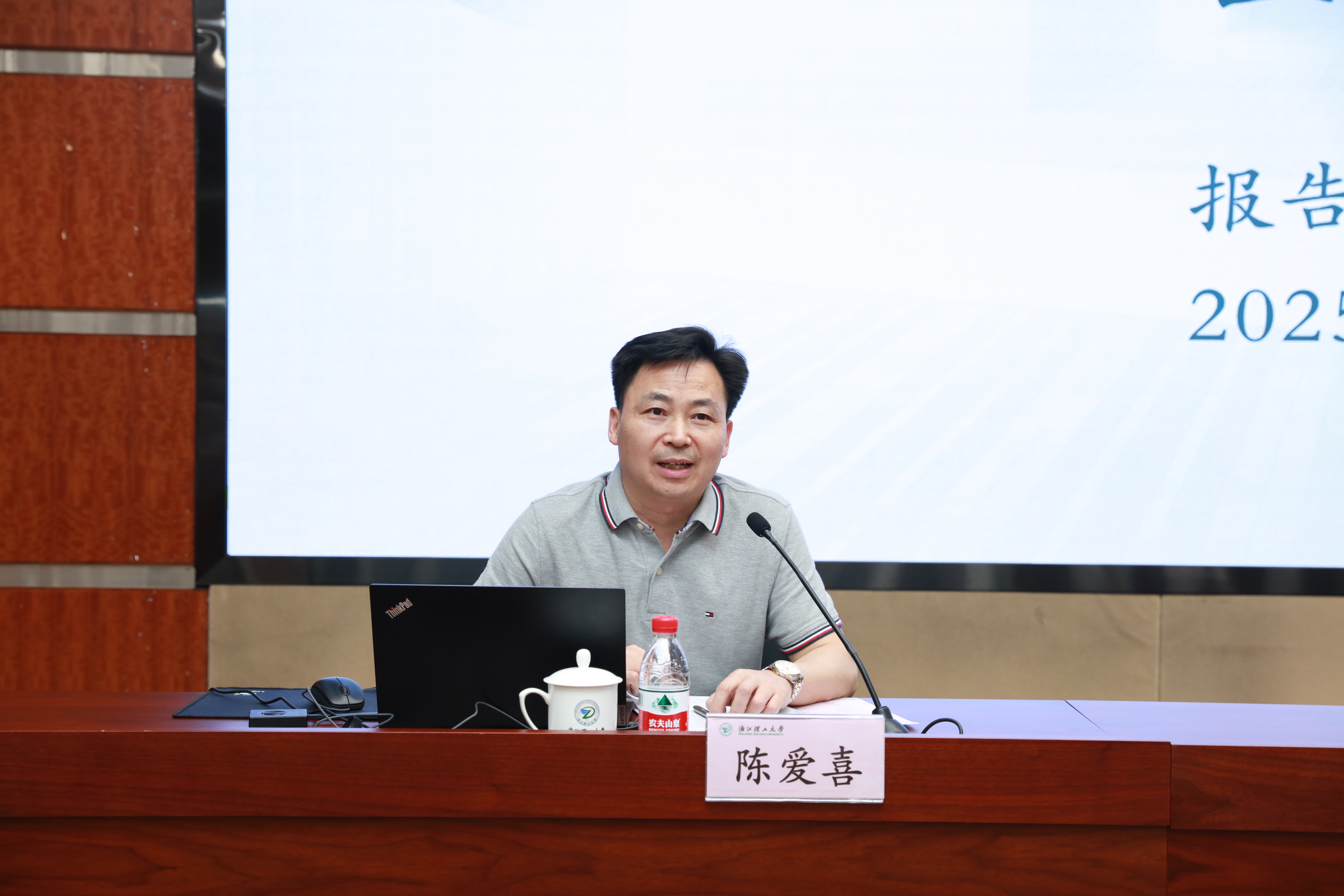 陈爱喜就本科教育教学审核评估正式评估相关工作进行部署。他介绍了线上评估和入校评估两个阶段的总体安排,详细阐述了专家组的工作内容、各职能部门和各教学单位承担的任务以及正式评估工作要点,为学校迎接审核评估工作提供了清晰的行动指南,确保各项评估工作有序推进、落到实处。