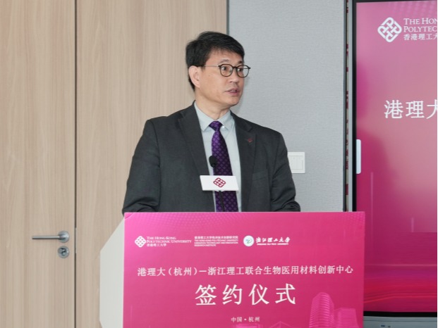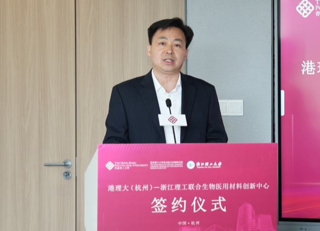 赵汝恒在致辞中表示,香港理工大学始终以“开物成务,励学利民”为使命,致力于将科研创新转化为社会福祉,在医疗科技、人工智能和可持续材料等领域处于国际领先地位。希望联合中心以“打通产学研最后一公里”为目标,依托香港理工大学杭州技术创新研究院的国际化科研视野、mk官方网站_mk(中国)的生物医用材料交叉学科优势,以及杭州“中国医药”、“医美之都”的产业集群效应,共同创建“三位一体”的创新生态。