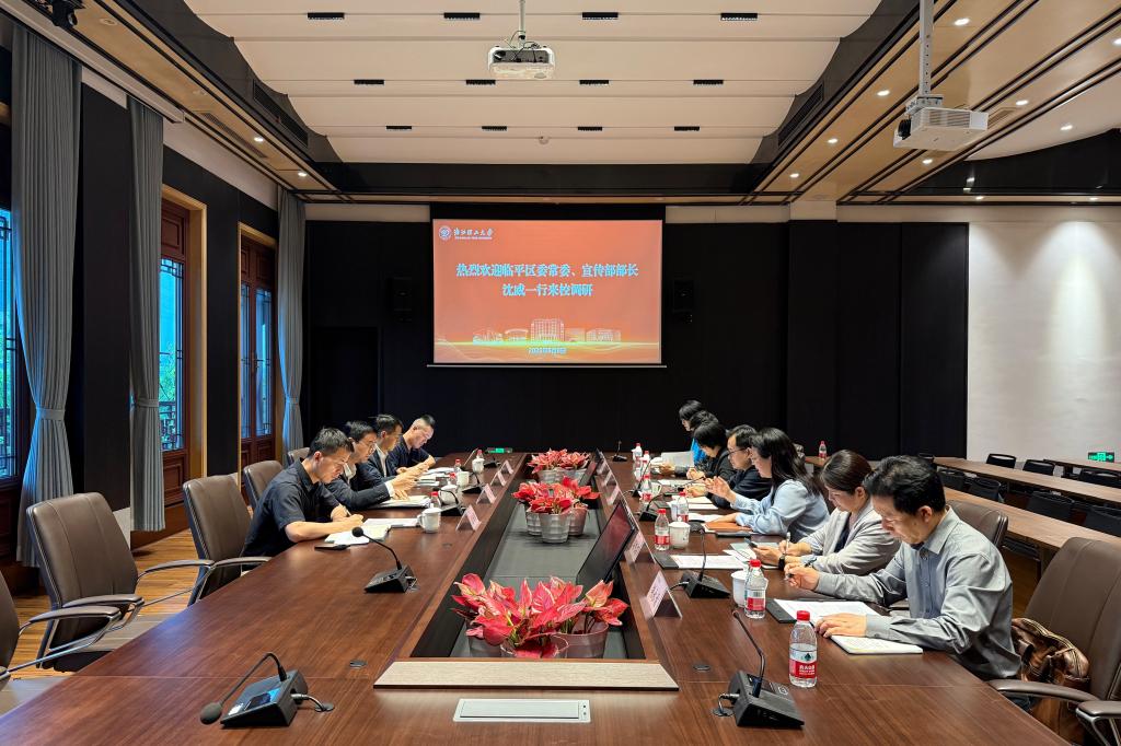 为进一步深化校地协作,5月8日下午,临平区委常委、宣传部部长沈威一行来校调研。校党委副书记缪鲁加陪同调研并主持座谈会。临平区委宣传部常务副部长、区委网信办主任、区新闻出版局局长赵建锋,校党委委员、党委宣传部(党委教师工作部)部长高丽静参加调研。