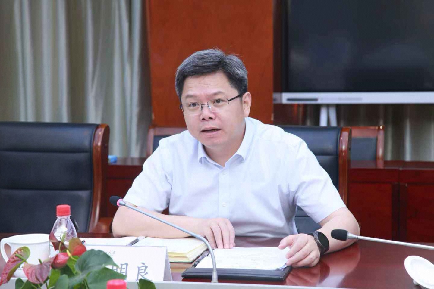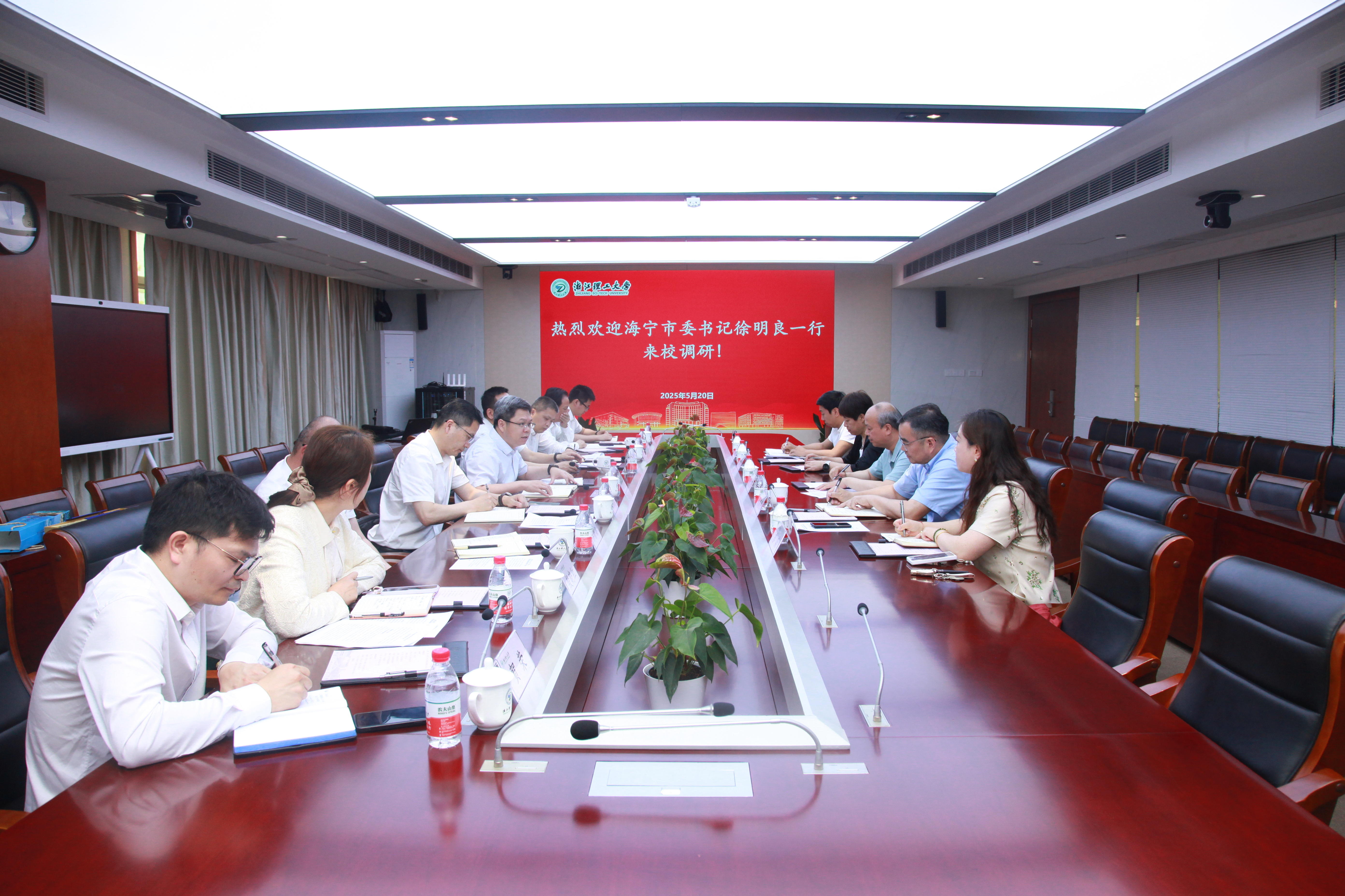 5月20日上午,海宁市委书记徐明良一行来校调研。校长陈文兴主持座谈会,校党委委员、副校长姚菊明参加座谈。