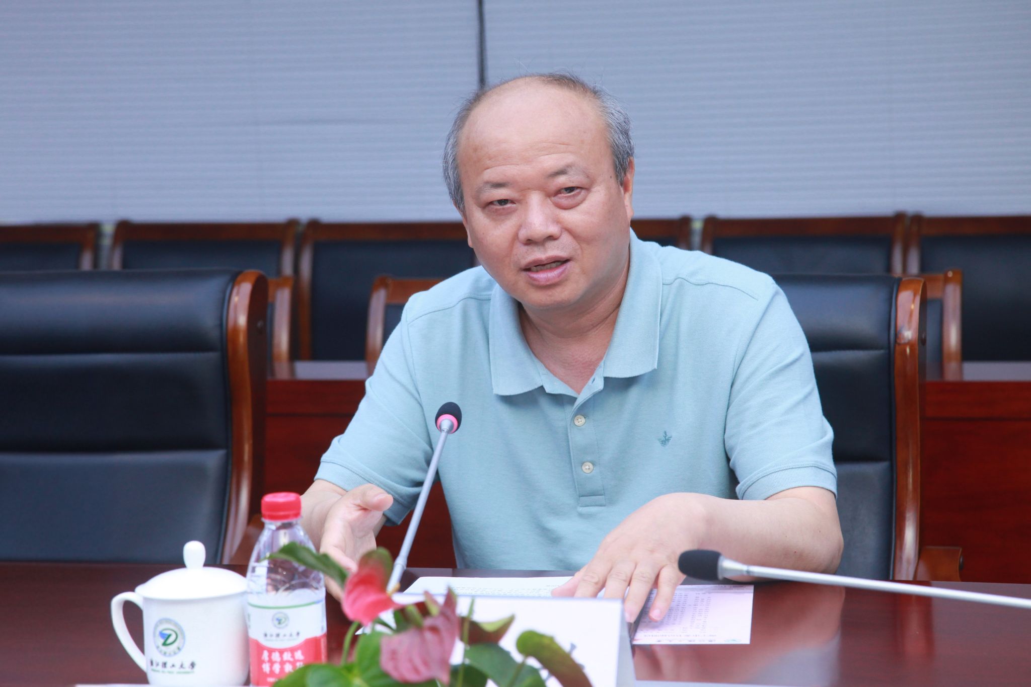 陈文兴对海宁市一行的到来表示热烈欢迎,他表示学校与海宁联系紧密,尤其许村镇与我校的合作紧密、内容丰富、形式多样。他强调,海宁的纺织服装产业与我校的优势特色学科高度契合,希望能进一步深化合作,推动科技创新和产业创新深度融合。