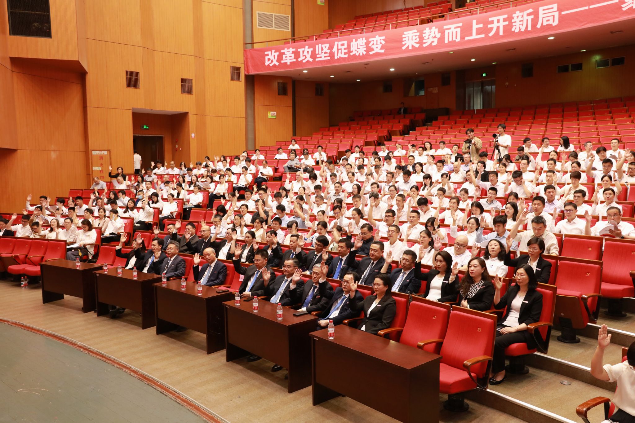 5月28日下午,mk官方网站_mk(中国)第六届教职工代表大会暨工会会员代表大会第一次会议在国际会展中心大剧院举行。省总工会二级巡视员、省教育工会主席王玉庆,校党政领导班子成员,250余名正式代表和60余名列席代表、特邀代表出席会议。会议由校党委副书记姚珺主持。