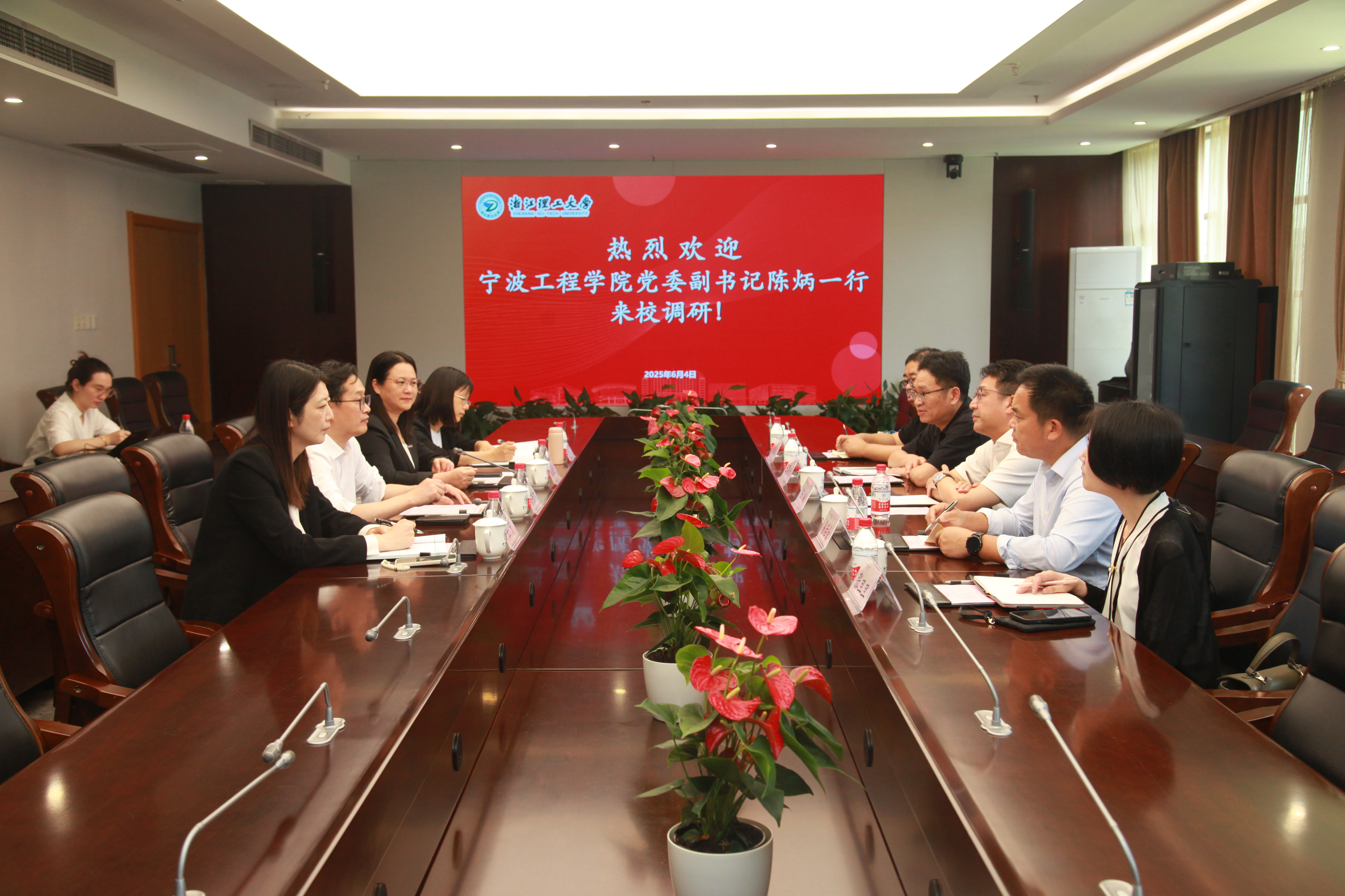 6月4日上午,宁波工程学院党委副书记陈炳一行来校调研,校党委副书记缪鲁加陪同调研并主持座谈会。