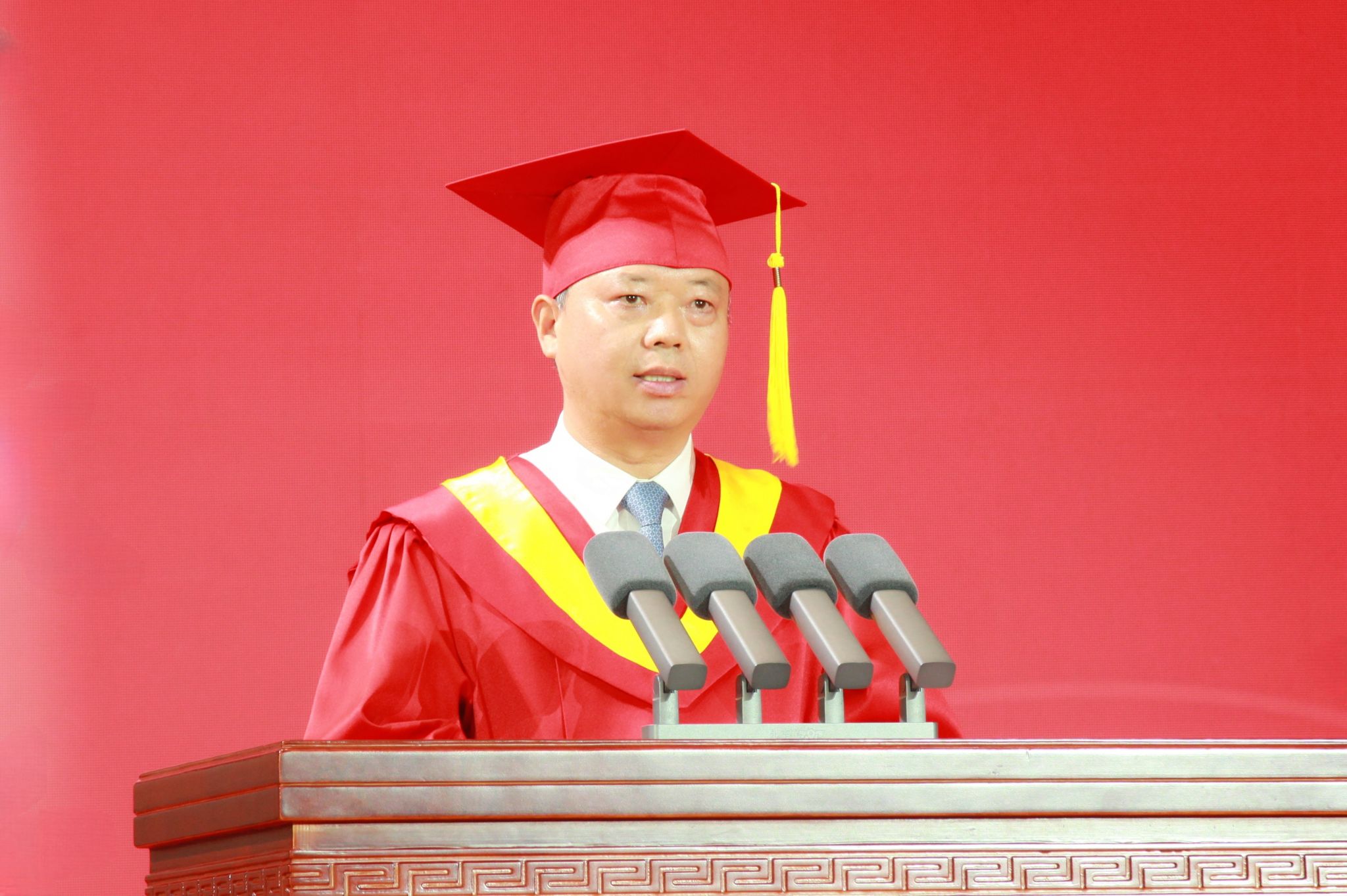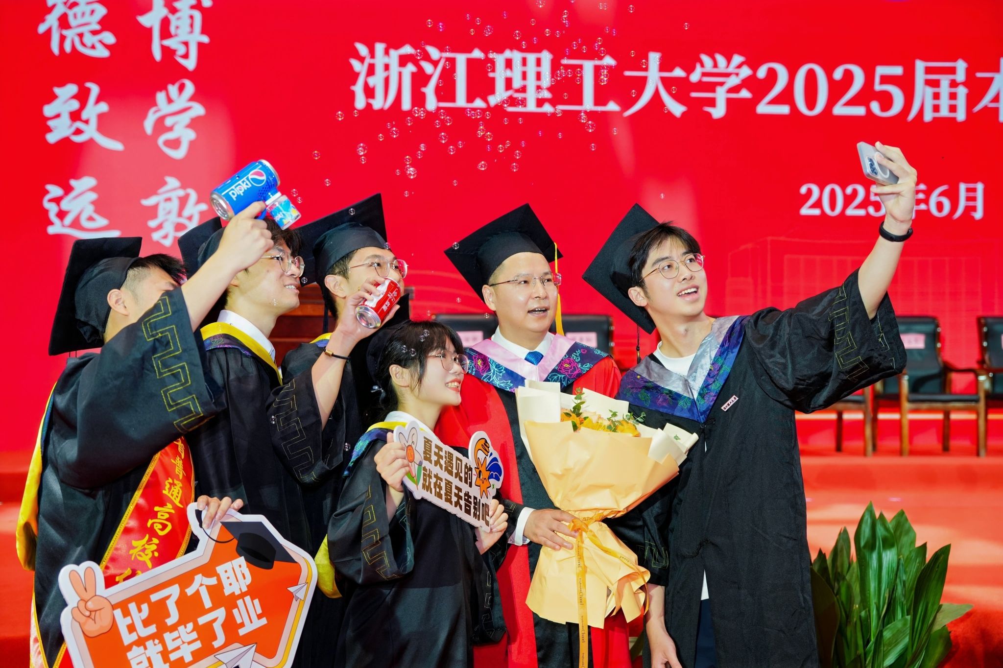 校长陈文兴在向圆满完成学业的4000余名本科生致以热烈祝贺,向父母与师长表示敬意和感谢。他回顾了同学们四年来在浙理的成长与收获,肯定了他们在学习、科研、志愿服务等方面的优异表现。随后,以“三件衣裳” 为喻寄托嘱托:愿同学们身着“布衣”,保持质朴务实,坚守初心;披上“蓑衣”,从容面对风雨,坚韧不拔;穿上“战衣”,永葆奋斗姿态,勇于创新。他强调,浙理永远是同学们的家,并祝愿他们前程似锦、一路荣光。