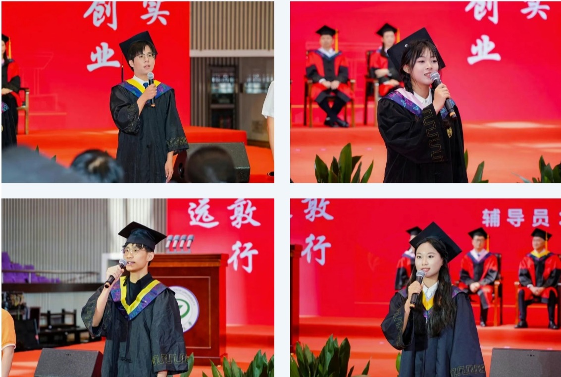 毕业生代表们深情致谢师长的谆谆教诲,感念同窗的珍贵情谊,铭记父母的默默付出,号召全体浙理学子与母校同路,与时代同行,在青春的赛道上跑出当代青年的最好成绩。