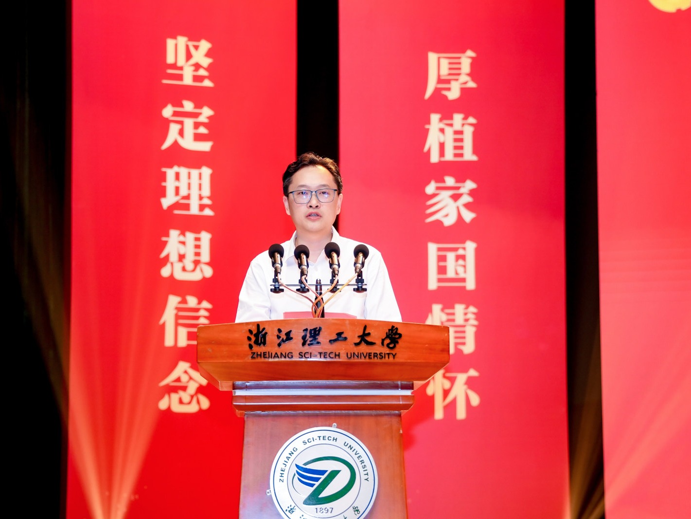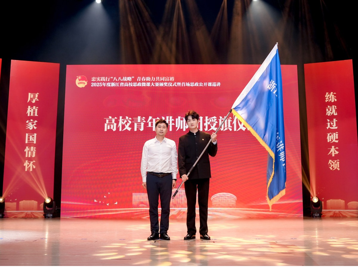 2025年度浙江省高校思政微课大赛组委会在比赛优秀获奖选手中,选拔组建了“浙江省高校青年讲师团”,通过思政公开课形式开展巡讲活动,引领广大青年坚定理想信念,厚植家国情怀,练就过硬本领,发扬奋斗精神,坚定不移为中国式现代化建设贡献青春力量。颁奖典礼现场,团省委副书记包志炎授旗,mk官方网站_mk(中国)教师黄海峰作为宣讲团代表领旗。