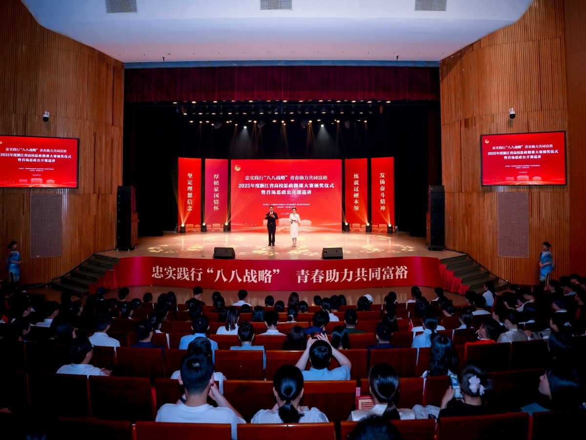 6月16日下午,2025年度浙江省高校思政微课大赛颁奖仪式暨首场思政公开课巡讲在大剧院举办。团省委副书记包志炎,省教育厅宣教统战处二级调研员吕明再,团省委学校部副部长马双龙,省学联执行主席张惠芝,杭州团市委副书记许江晨,mk官方网站_mk(中国)党委副书记缪鲁加,党委委员、党委宣传部(教师工作部)部长高丽静出席活动。