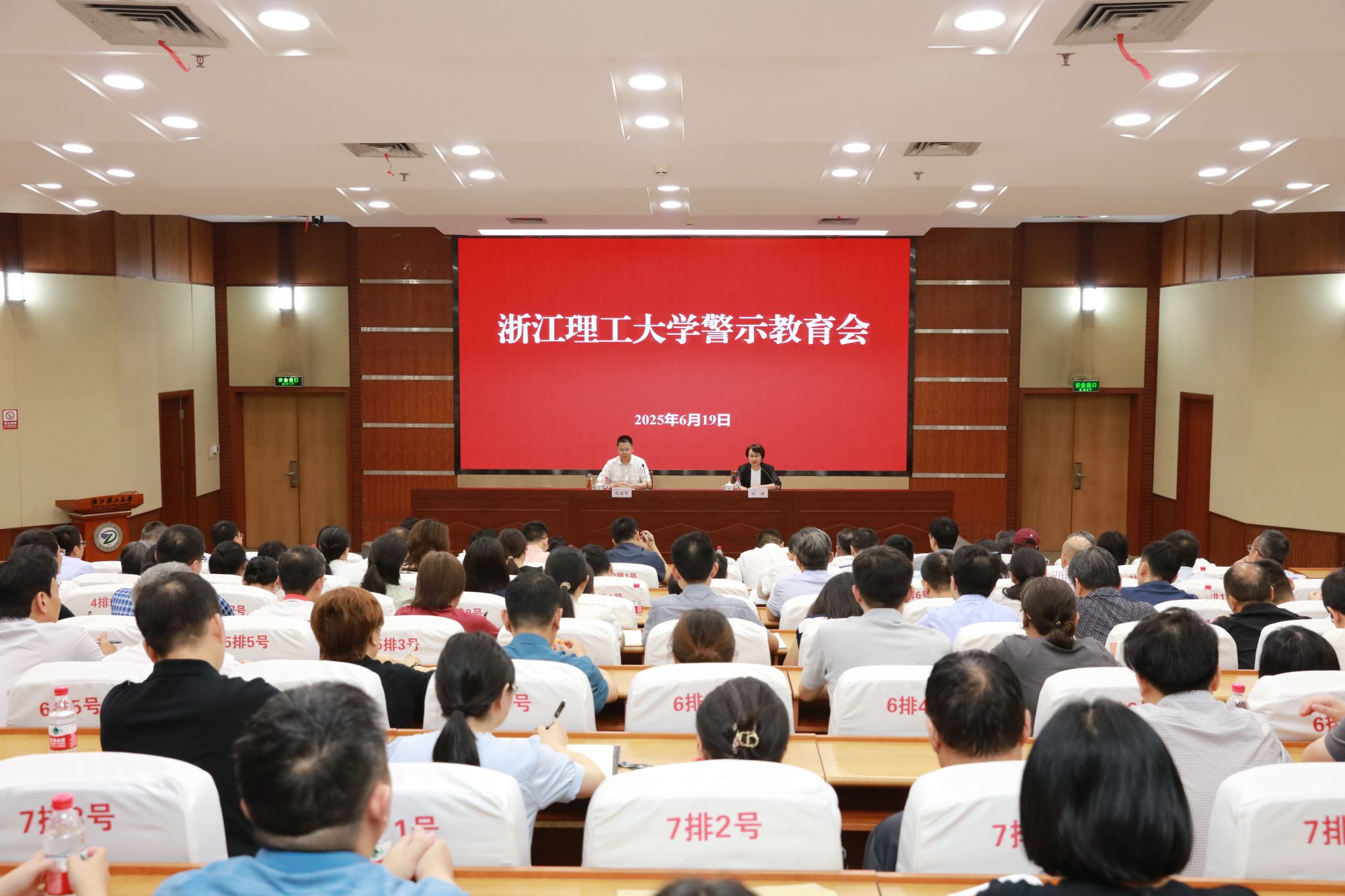 6月19日下午,mk官方网站_mk(中国)在下沙校区行政楼二楼报告厅召开警示教育会,深入学习贯彻习近平总书记关于加强党的作风建设的重要论述和中央八项规定及其实施细则精神,深刻认识加强党的作风建设的重大意义,贯彻落实全省警示教育大会精神,充分运用“身边事”警醒“身边人”,通过以案说德、以案说纪、以案说法、以案说责,教育引导党员干部知敬畏、存戒惧、守底线,共同营造风清气正的校园政治生态。校党委书记赵全军出席会议并讲话,校党委副书记姚珺主持会议。