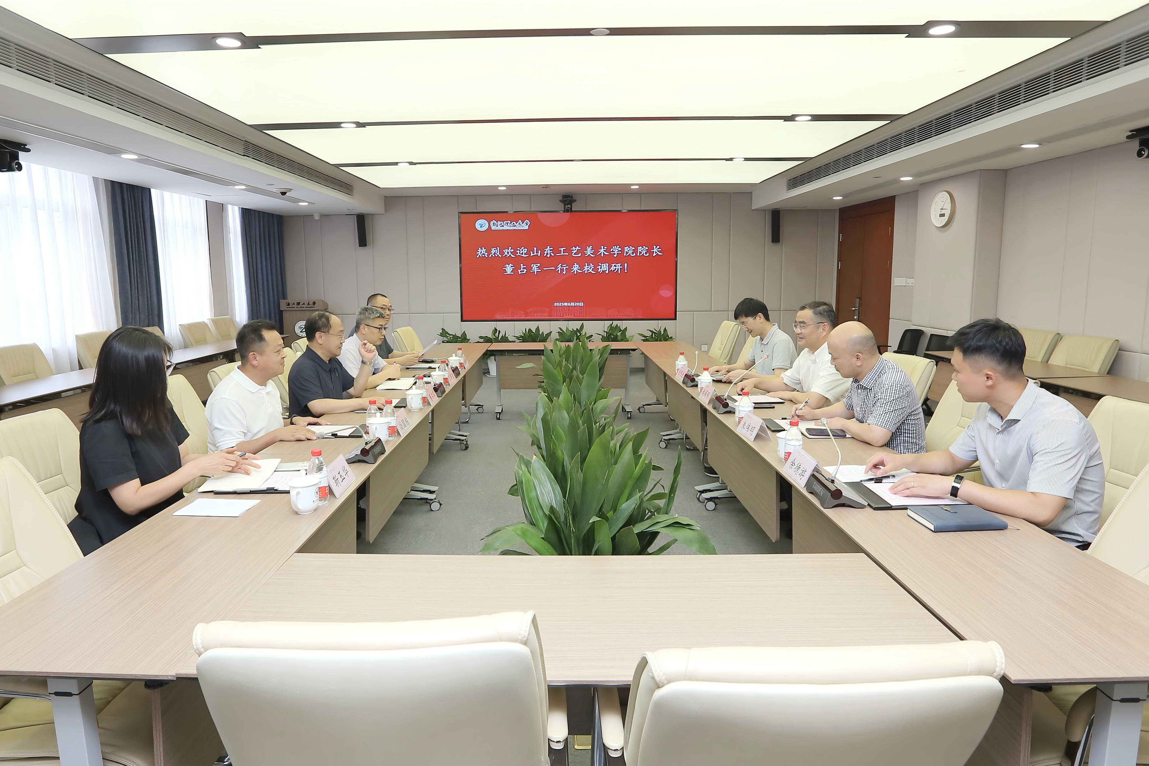 6月20日下午,山东工艺美术学院院长董占军一行来校调研,副校长姚菊明陪同调研并主持座谈会。