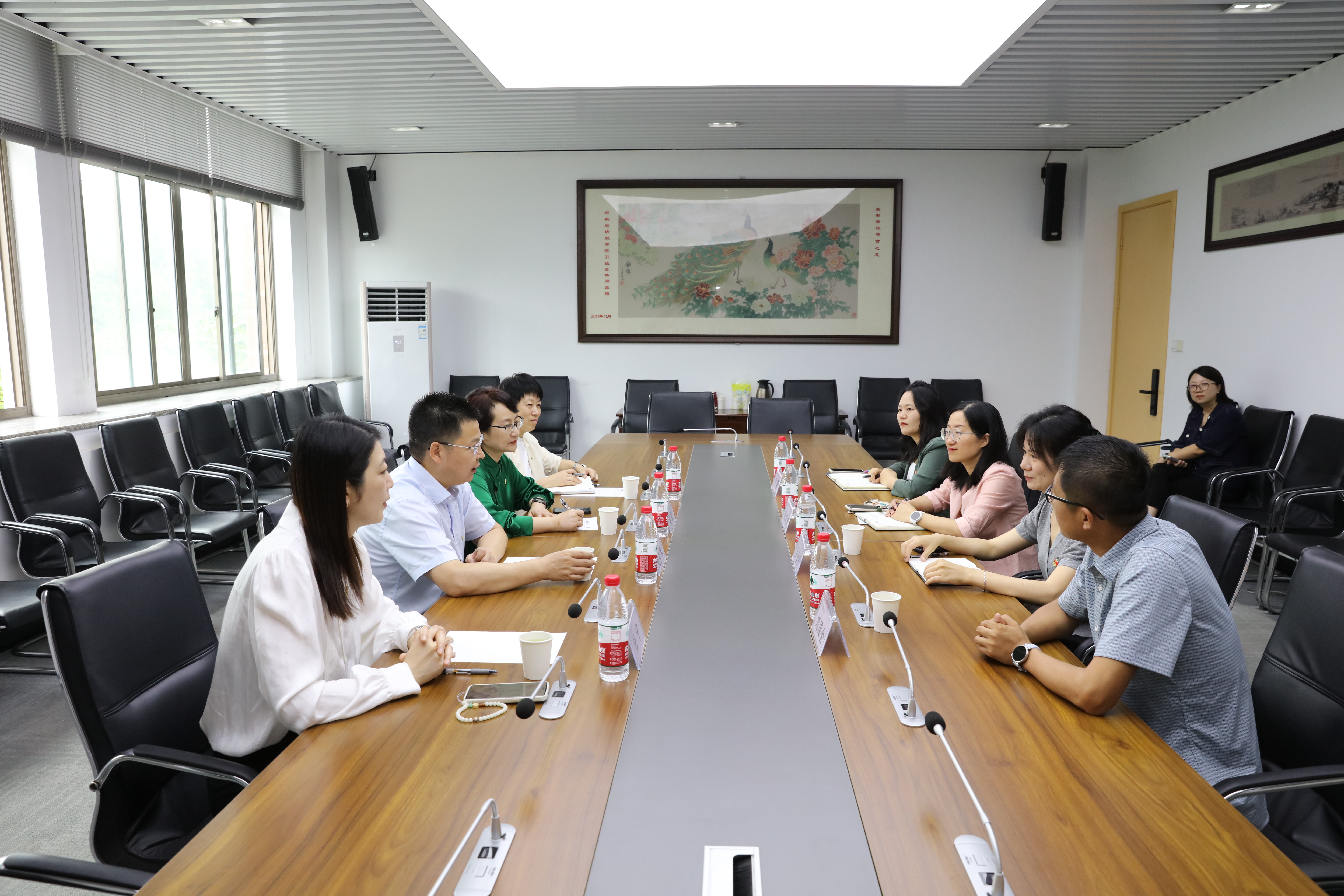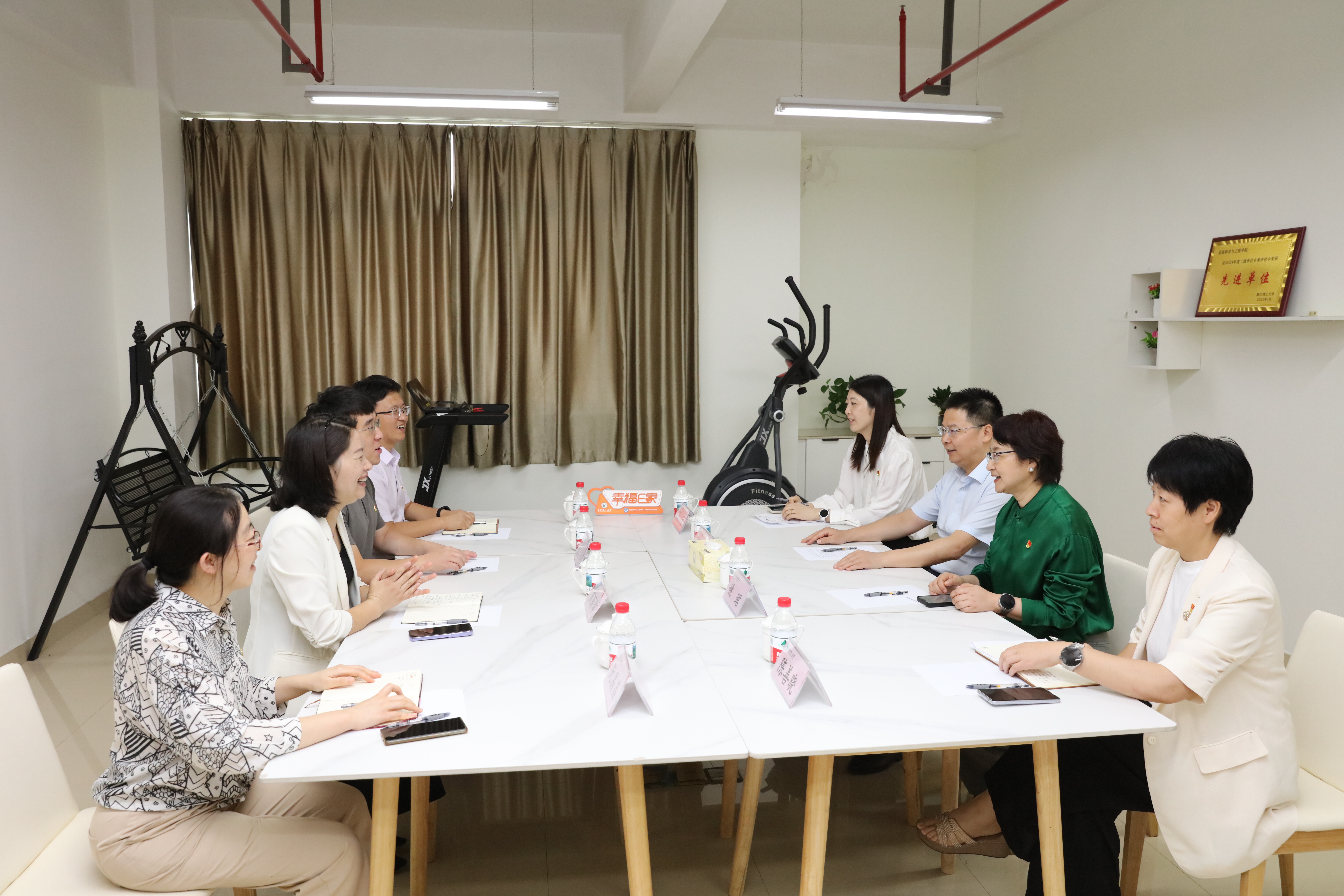 在纺织科学与工程学院(国际丝绸学院),赵书记亲切慰问了全省高校优秀共产党员吴金丹,并同学院党委班子成员座谈交流。他表示,纺织服装产业是浙江传统优势产业,产业规模已超万亿元。学院作为全省党建工作标杆院系,要以高质量党建引领学院事业高质量发展,通过强化政治引领、优化组织动员、深化价值认同,突出重点、找准定位、精准发力,系统性将组织优势转化为推动“纺织强国”建设的发展胜势,为加快推动纺织产业转型升级贡献力量。