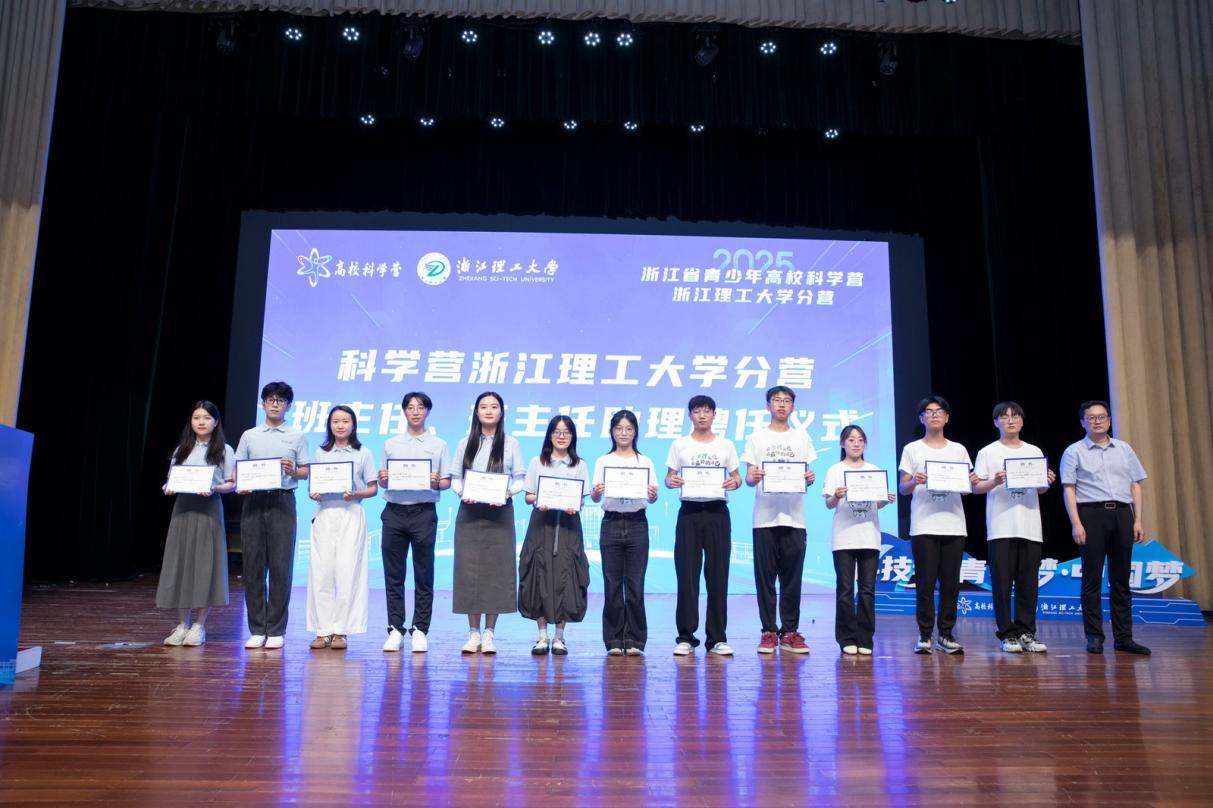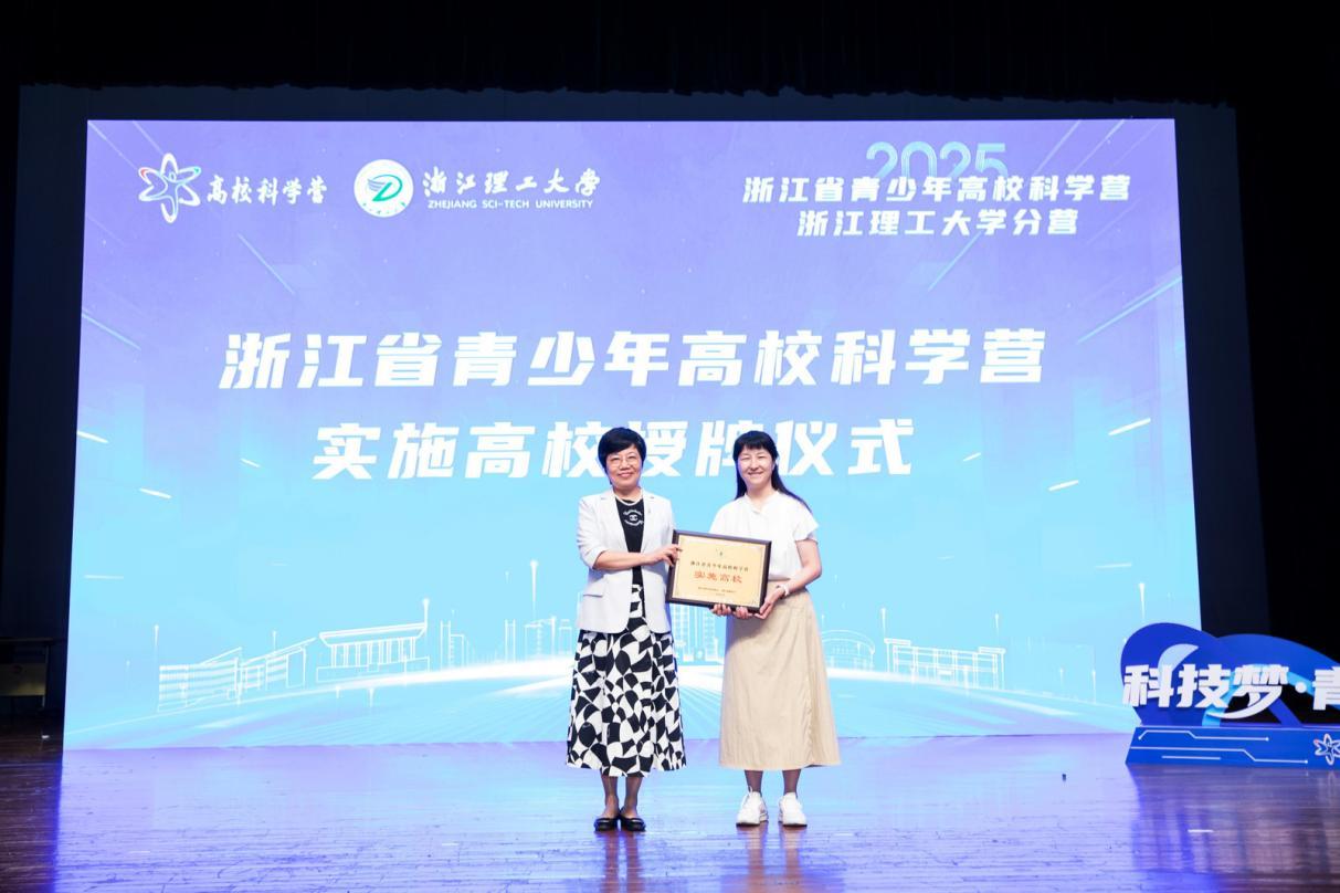 活动中,王央杰为浙江省青少年高校科学营mk官方网站_mk(中国)分营授牌并授旗。