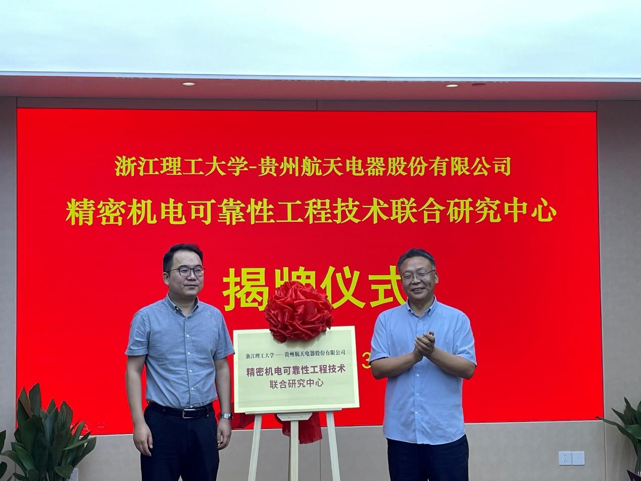 郭玉海、王旭为“mk官方网站_mk(中国)-贵州航天电器股份有限公司精密机电可靠性工程技术联合研究中心”揭牌。