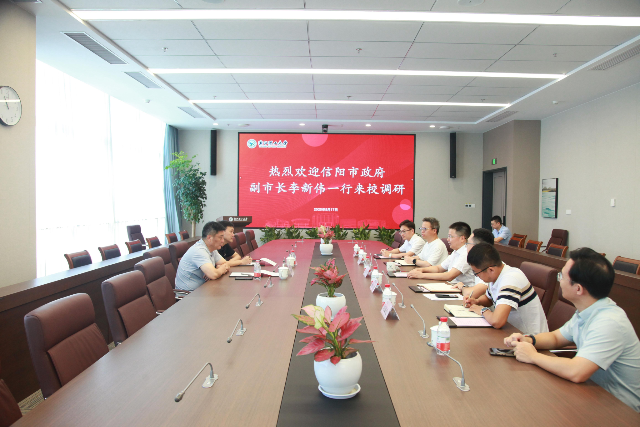 8月17日上午,信阳市人民政府副市长李新伟一行来校调研。校党委书记赵全军陪同调研并出席座谈会。