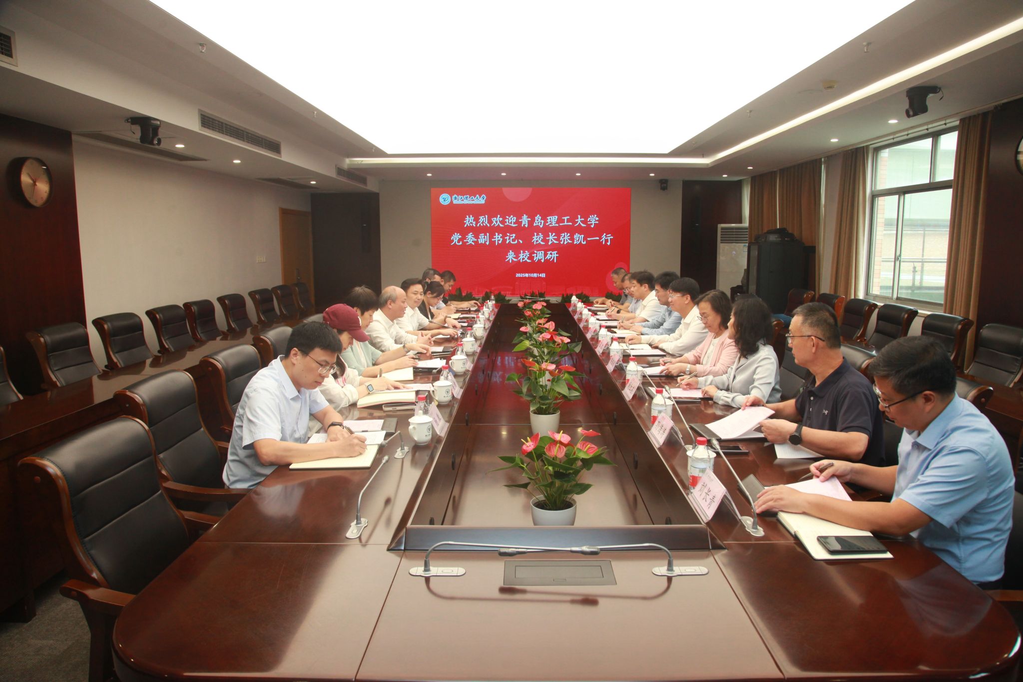 10月14日下午,青岛理工大学党委副书记、校长张凯一行来校调研。mk官方网站_mk(中国)校长陈文兴主持座谈会,副校长陈爱喜陪同调研并参加座谈会。