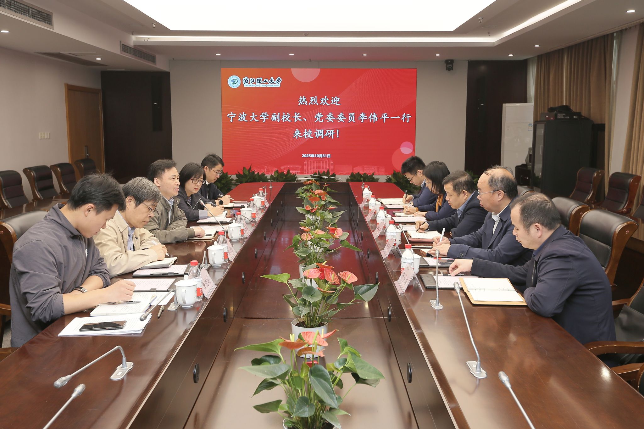 10月31日上午,宁波大学副校长、党委委员李伟平一行来校调研。校党委书记赵全军、副校长姚菊明会见了李伟平一行,副校长陈爱喜主持座谈会并陪同调研。