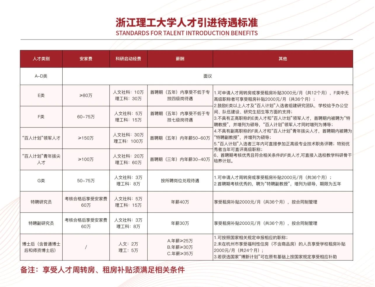 各类人才除享受按国家有关规定提供的工资、保险、福利待遇外,学校还提供特殊待遇,详情可参考下方表格。