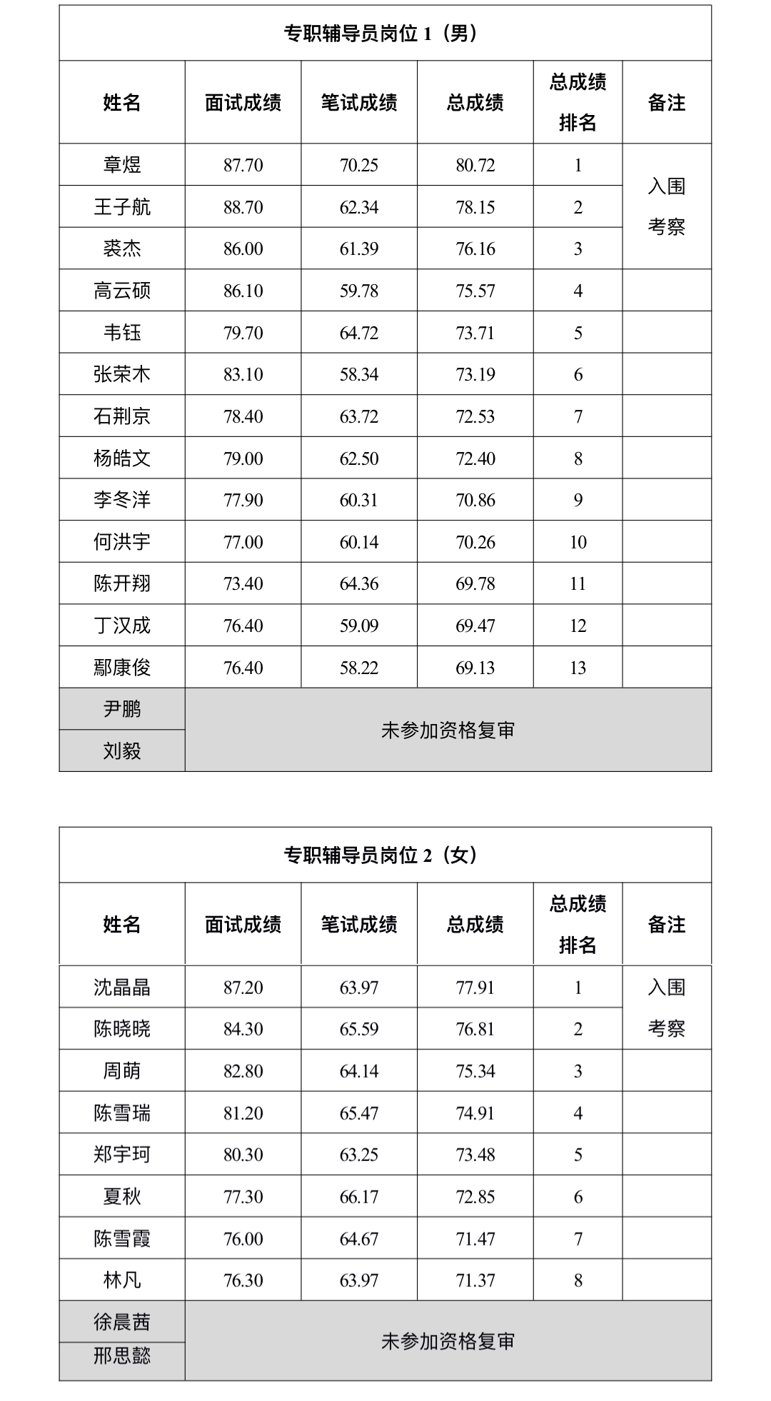 我校按照招聘岗位数1:1比例统一安排入围人员进行体检。