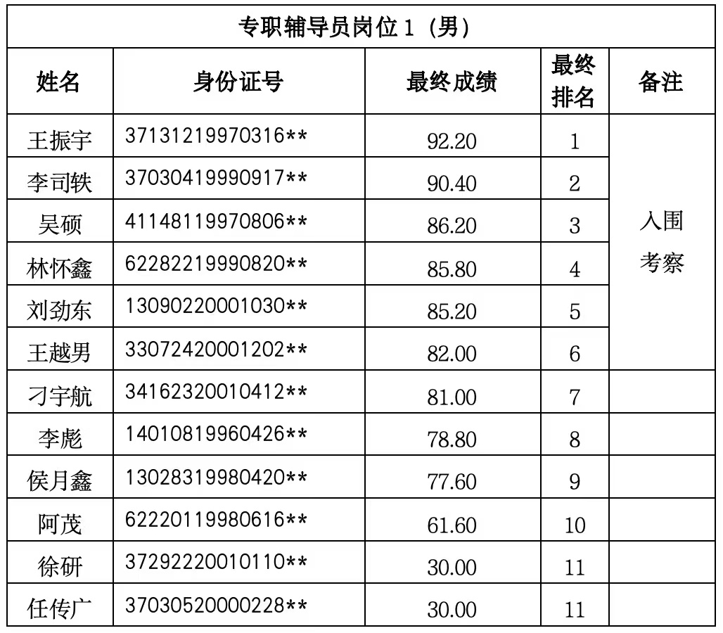 我校按照招聘岗位数1:1比例统一安排入围人员进行体检。