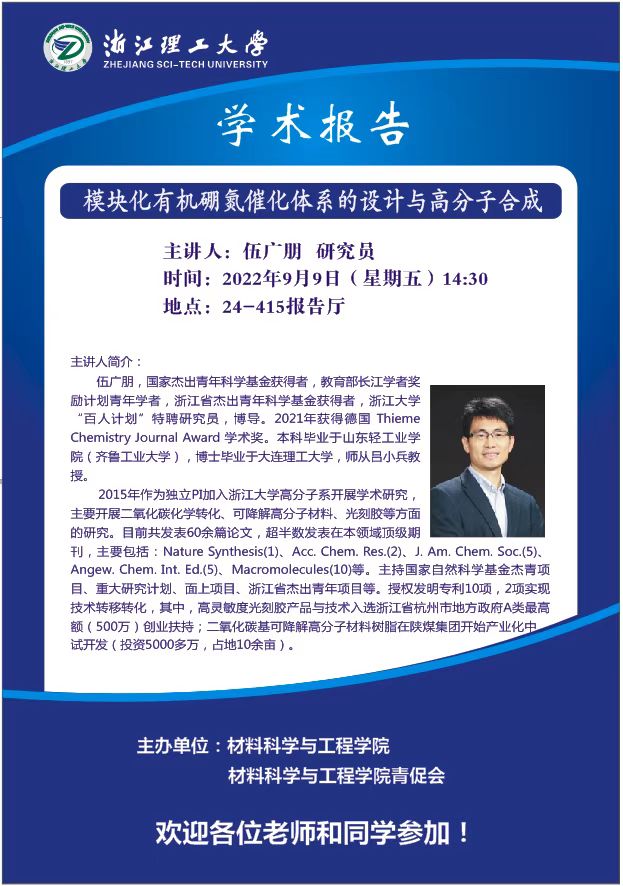 报告题目:模块化有机硼氮催化体系的设计与高分子合成