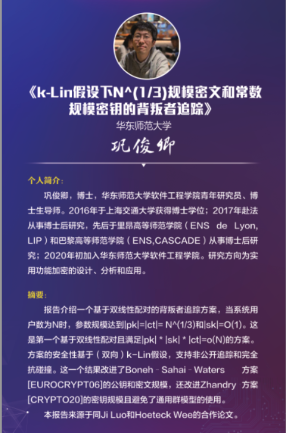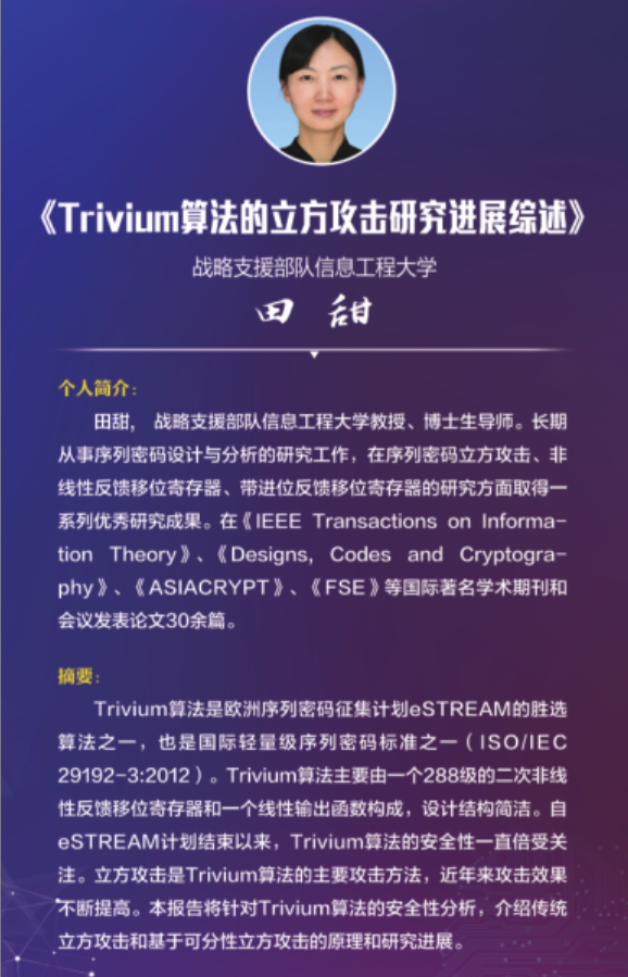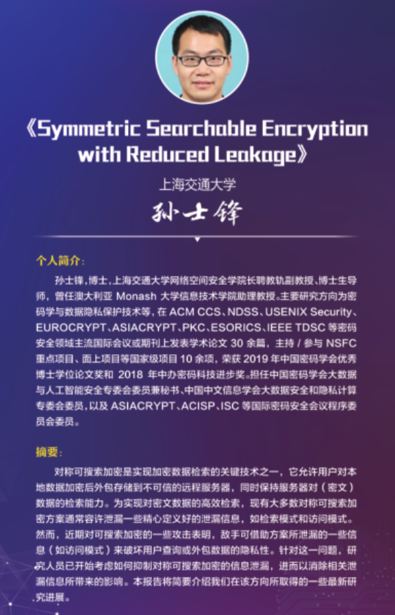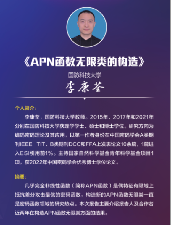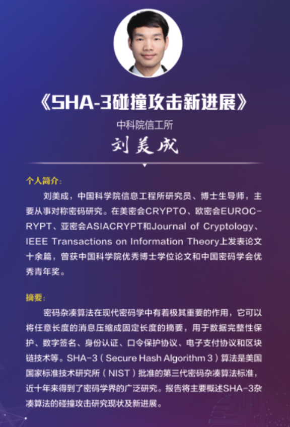 数字经济时代数据安全关乎国家安全,新型密码理论、设计架构以及前沿技术的出现,将推动数据安全和密码学在科学研究、产业创新和社会发展的广泛应用。此次会议旨在为从事密码与信息安全研究的广大青年学者、技术人员和在校研究生提供学术交流合作平台。会议将邀请多位在密码学与信息安全等研究领域的专家学者做大会特邀报告。诚邀密码及信息安全领域广大学者、业界精英、工程技术人员、管理人员和在校研究生参会!
