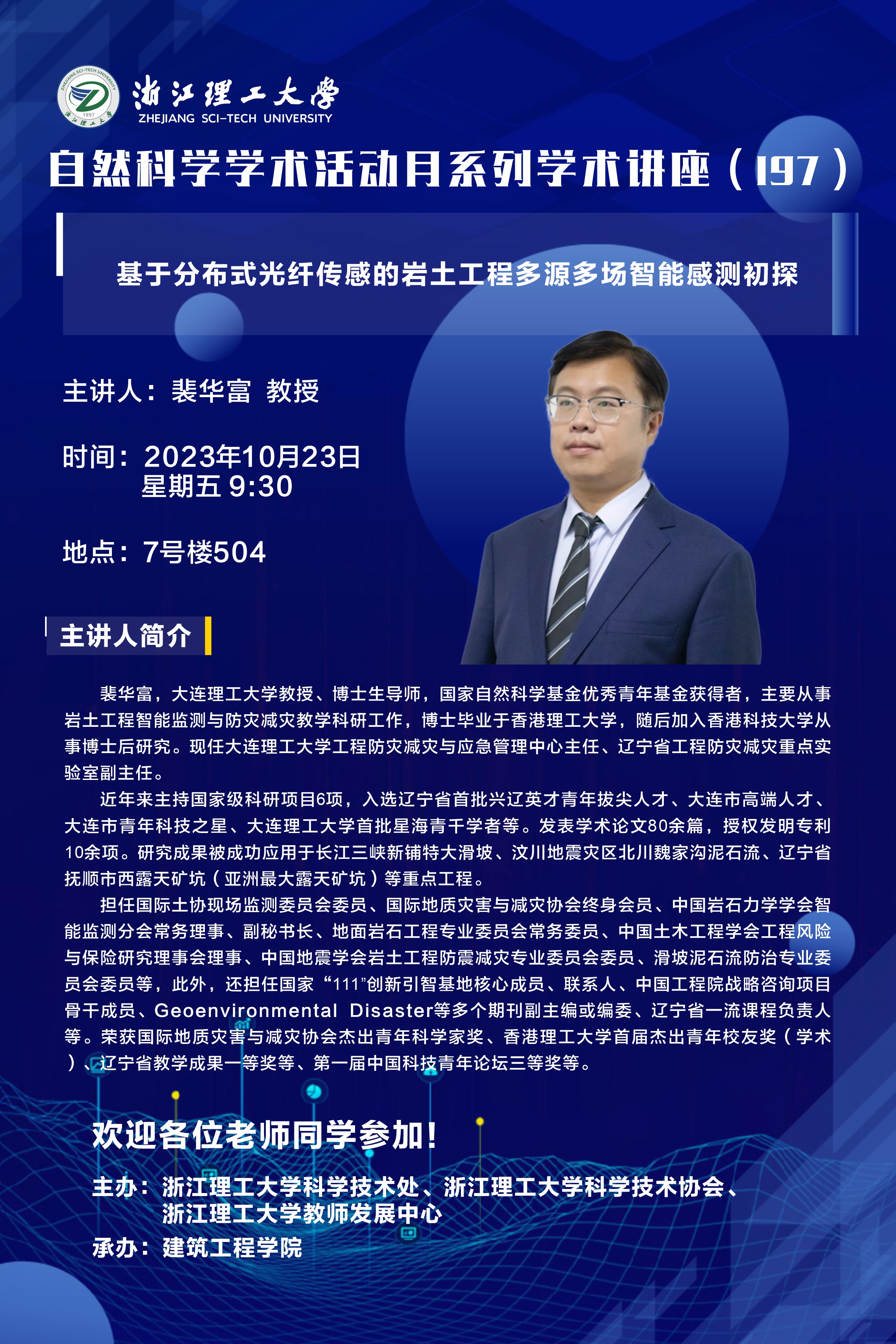 裴华富,大连理工大学教授、博士生导师,国家自然科学基金优秀青年基金获得者,主要从事岩土工程智能监测与防灾减灾教学科研工作,博士毕业于香港理工大学,随后加入香港科技大学从事博士后研究。现任大连理工大学工程防灾减灾与应急管理中心主任、辽宁省工程防灾减灾重点实验室副主任。