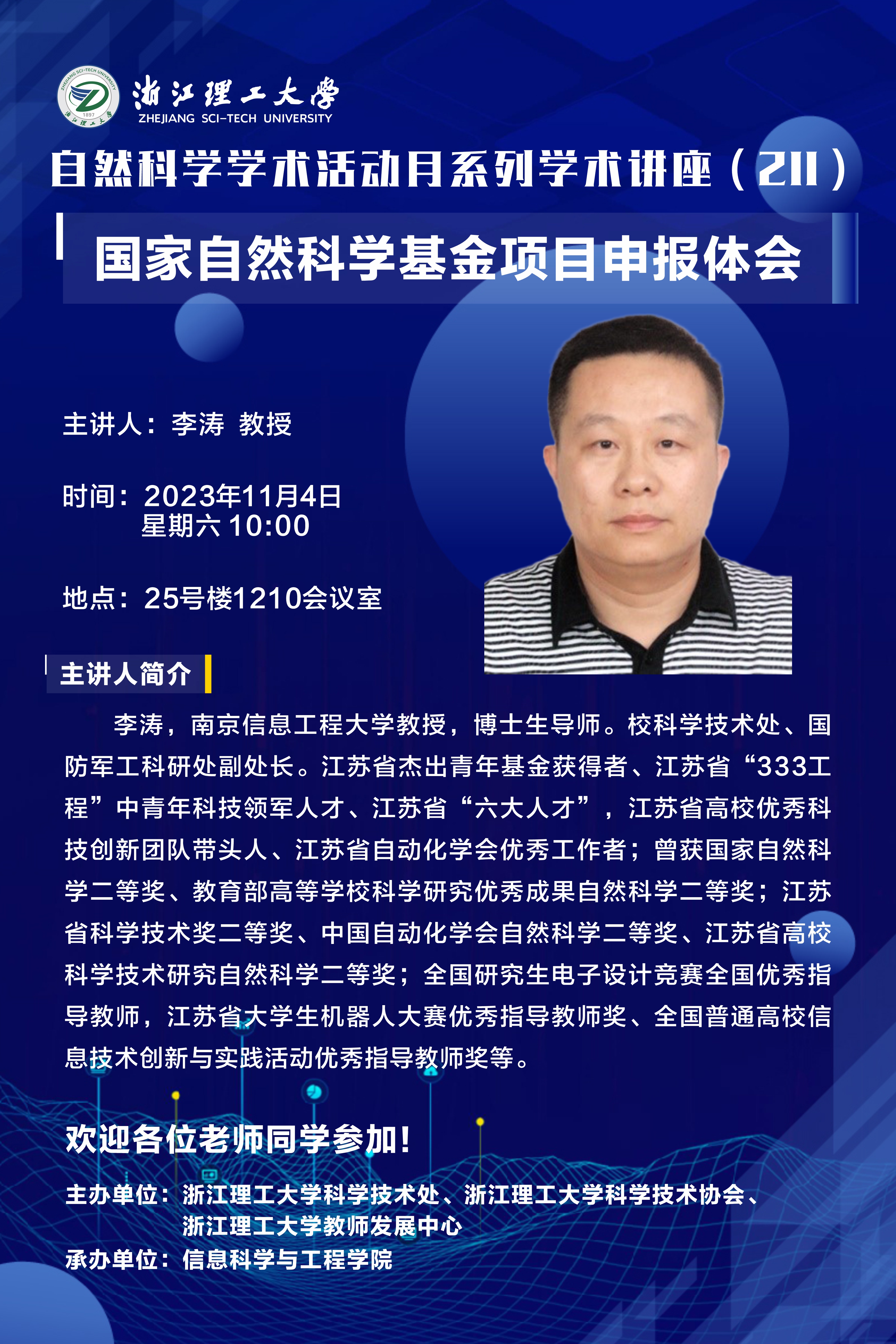 李涛,南京信息工程大学教授,博士生导师。校科学技术处、国防军工科研处副处长。江苏省杰出青年基金获得者、江苏省“333工程”中青年科技领军人才、江苏省“六大人才”,江苏省高校优秀科技创新团队带头人、江苏省自动化学会优秀工作者;曾获国家自然科学二等奖、教育部高等学校科学研究优秀成果自然科学二等奖;江苏省科学技术奖二等奖、中国自动化学会自然科学二等奖、江苏省高校科学技术研究自然科学二等奖;全国研究生电子设计竞赛全国优秀指导教师,江苏省大学生机器人大赛优秀指导教师奖、全国普通高校信息技术创新与实践活动优秀指导教师奖等。