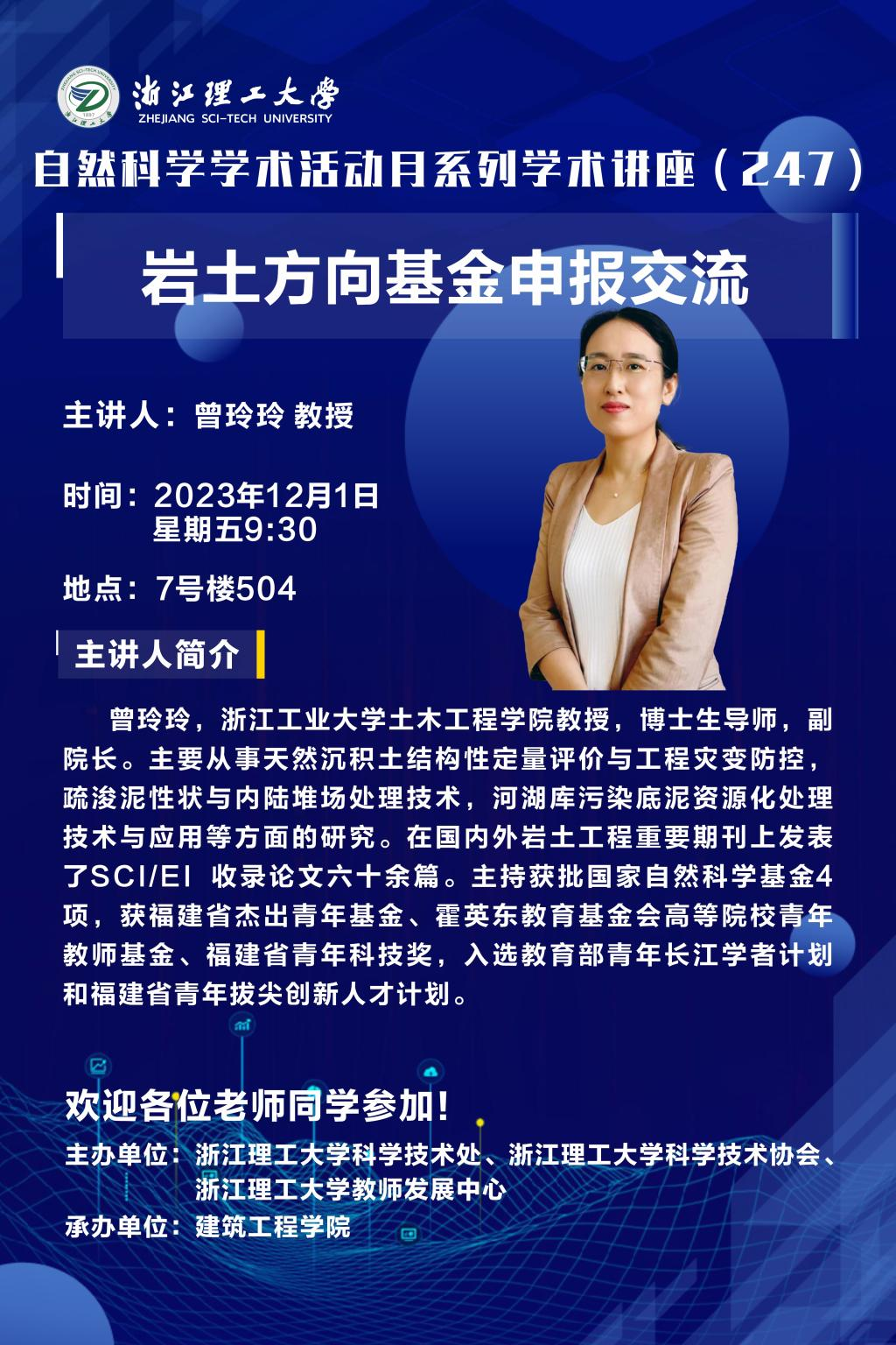 曾玲玲,浙江工业大学土木工程学院教授,博士生导师,副院长。主要从事天然沉积土结构性定量评价与工程灾变防控,疏浚泥性状与内陆堆场处理技术,河湖库污染底泥资源化处理技术与应用等方面的研究。在国内外岩土工程重要期刊上发表了SCI/EI收录论文六十余篇。主持获批国家自然科学基金4项,获福建省杰出青年基金、霍英东教育基金会高等院校青年教师基金、福建省青年科技奖,入选教育部青年长江学者计划和福建省青年拔尖创新人才计划。