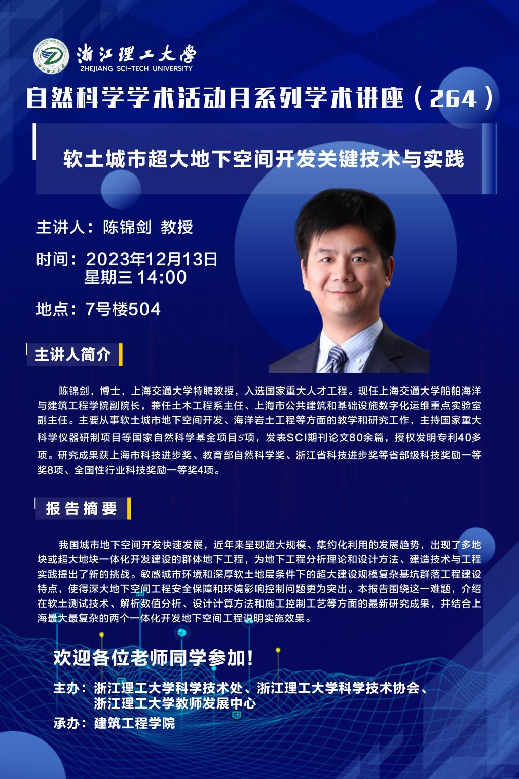 陈锦剑,博士,上海交通大学特聘教授,入选国家重大人才工程。现任上海交通大学船舶海洋与建筑工程学院副院长,兼任土木工程系主任、上海市公共建筑和基础设施数字化运维重点实验室副主任。主要从事软土城市地下空间开发、海洋岩土工程等方面的教学和研究工作,主持国家重大科学仪器研制项目等国家自然科学基金项目5项,发表SCI期刊论文80余篇,授权发明专利40多项。研究成果获上海市科技进步奖、教育部自然科学奖、浙江省科技进步奖等省部级科技奖励一等奖8项、全国性行业科技奖励一等奖4项。