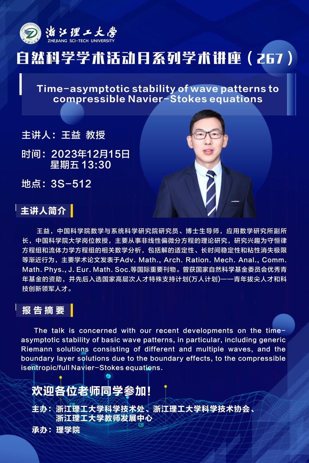 王益,中国科学院数学与系统科学研究院研究员、博士生导师,应用数学研究所副所长,中国科学院大学岗位教授,主要从事非线性偏微分方程的理论研究,研究兴趣为守恒律方程组和流体力学方程组的相关数学分析,包括解的适定性、长时间稳定性和粘性消失极限等渐近行为,主要学术论文发表于Adv. Math., Arch. Ration. Mech. Anal., Comm. Math. Phys., J. Eur. Math. Soc.等国际重要刊物。曾获国家自然科学基金委员会优秀青年基金的资助,并先后入选国家高层次人才特殊支持计划(万人计划)——青年拔尖人才和科技创新领军人才。