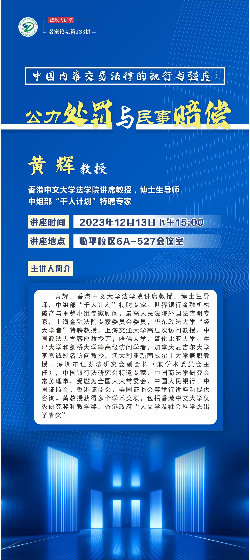 【法政学院、史量才新闻与传播学院】讲座预告——中国内幕交易法律的执行与强度:公力处罚与民事赔偿