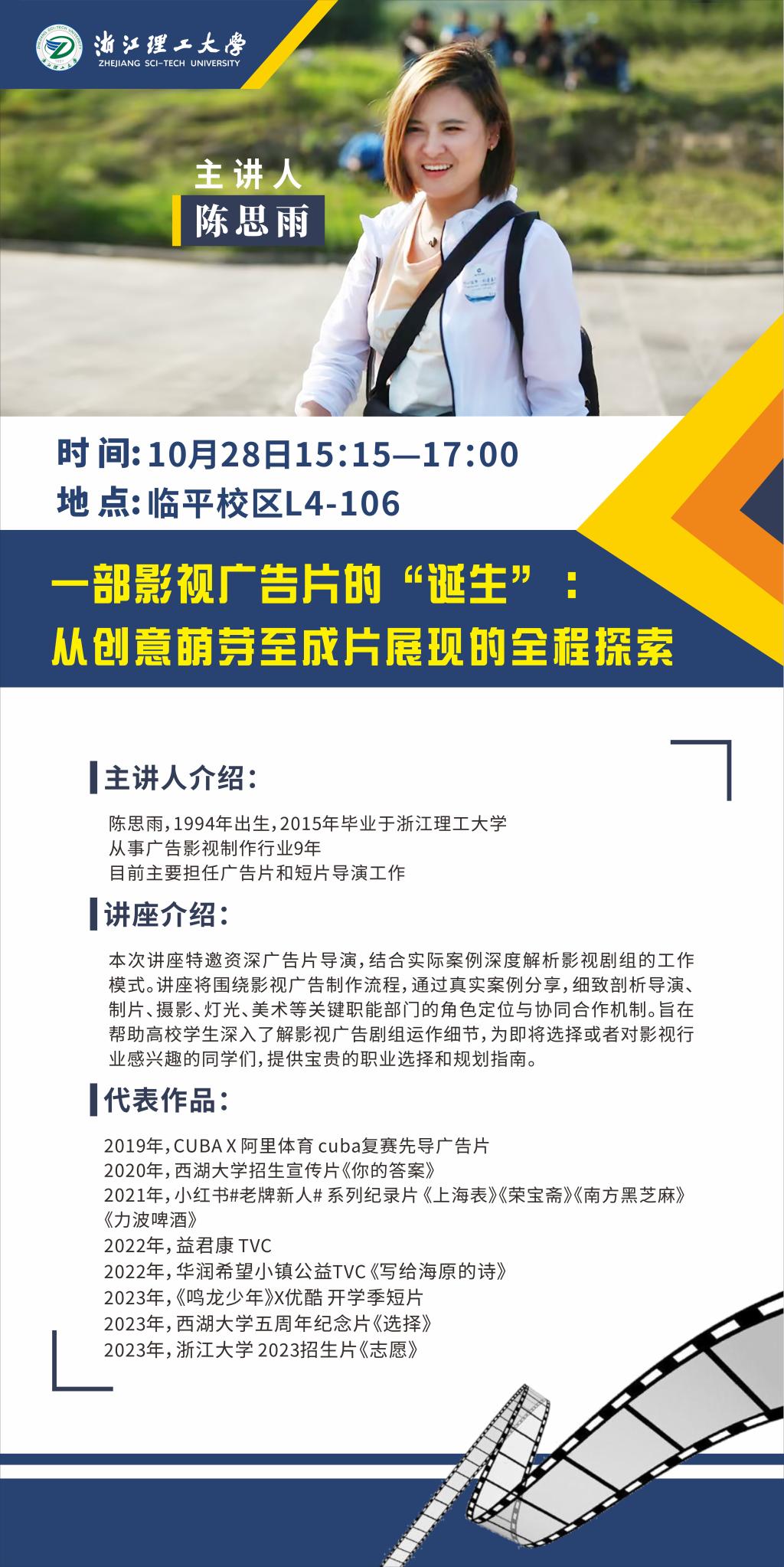 陈思雨讲座预告——《一部影视广告片的“诞生”:从创意萌芽至成片展现的全程探索》