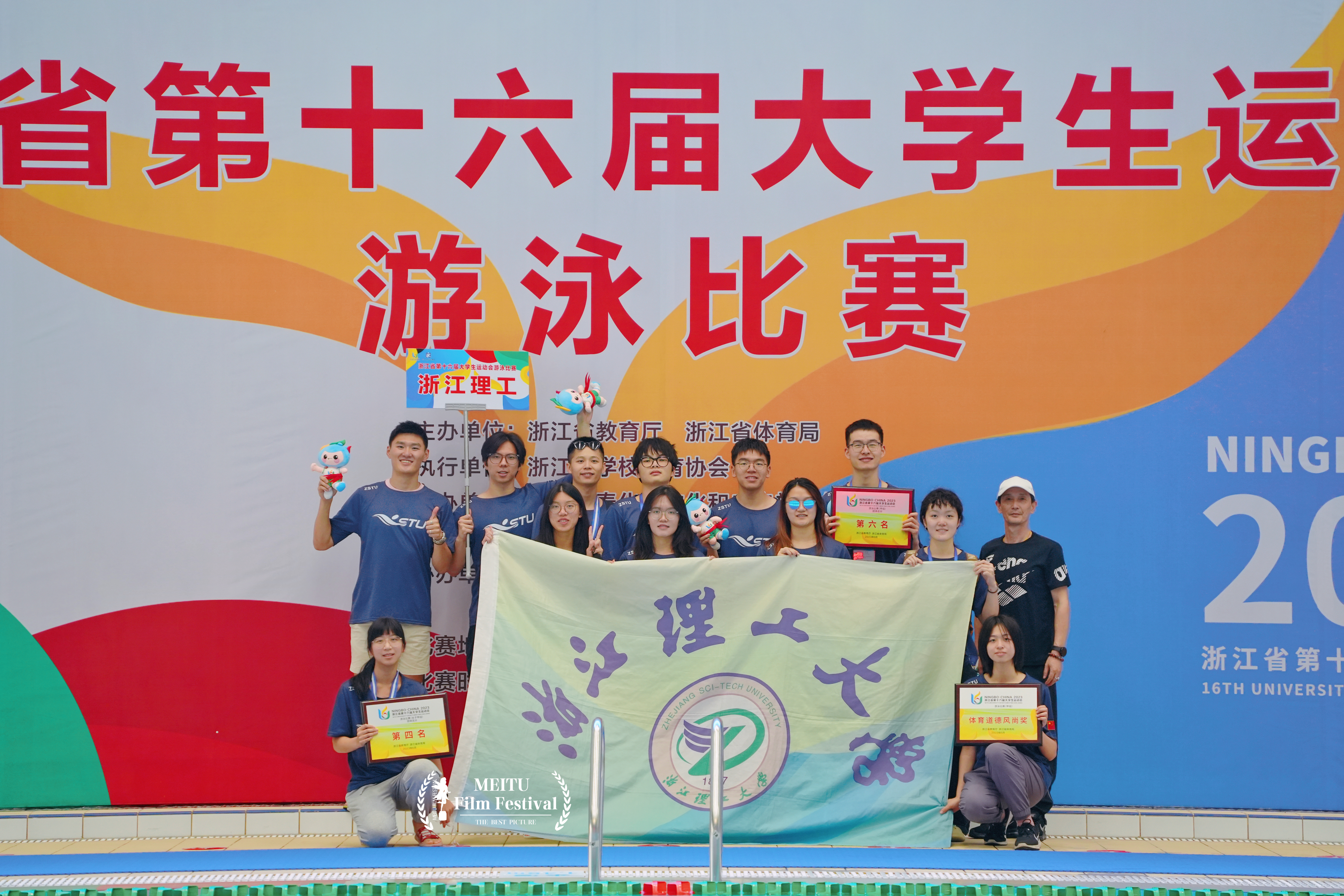 6月4日,浙江省第十六届大学生运动会游泳比赛在宁波奉化落幕。本次比赛由浙江省教育厅、浙江省体育局主办,来自全省51所高校的541名运动员在26个项目中参与角逐。我校派出体育教研部副主任邹学芝老师为领队,徐国芳、韦逸两位老师为教练,11名运动员的阵容参赛。