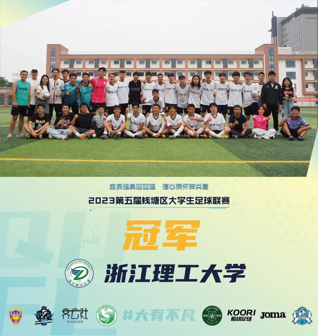 5月27日–6月11日,2023年第五届钱塘区大学生足球联赛在钱塘区各高校举行。我校男子足球队在主教练夏亮老师的带领下,团结协作,奋勇拼搏,以五战全胜的战绩获得冠军!
