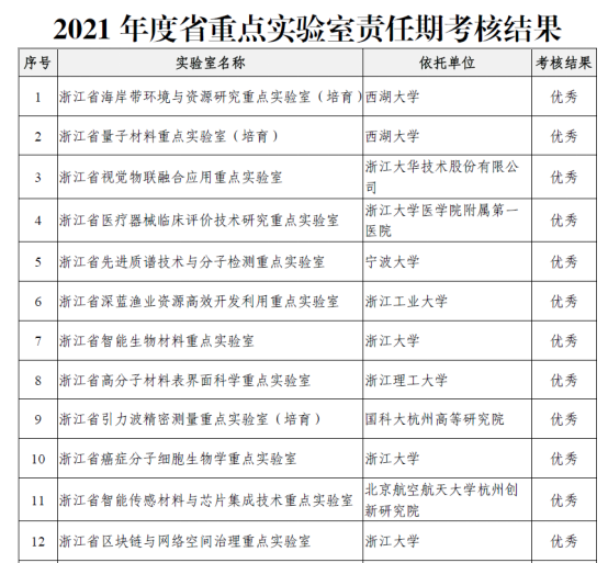 近日,浙江省科学技术厅公布了2021年度浙江省重点实验室责任期考核结果,mk官方网站_mk(中国)化学与化工学院“浙江省高分子材料表界面科学重点实验室”考核结果优秀。据悉,本次共有38家省重点实验室参加考核,其中优秀12家。