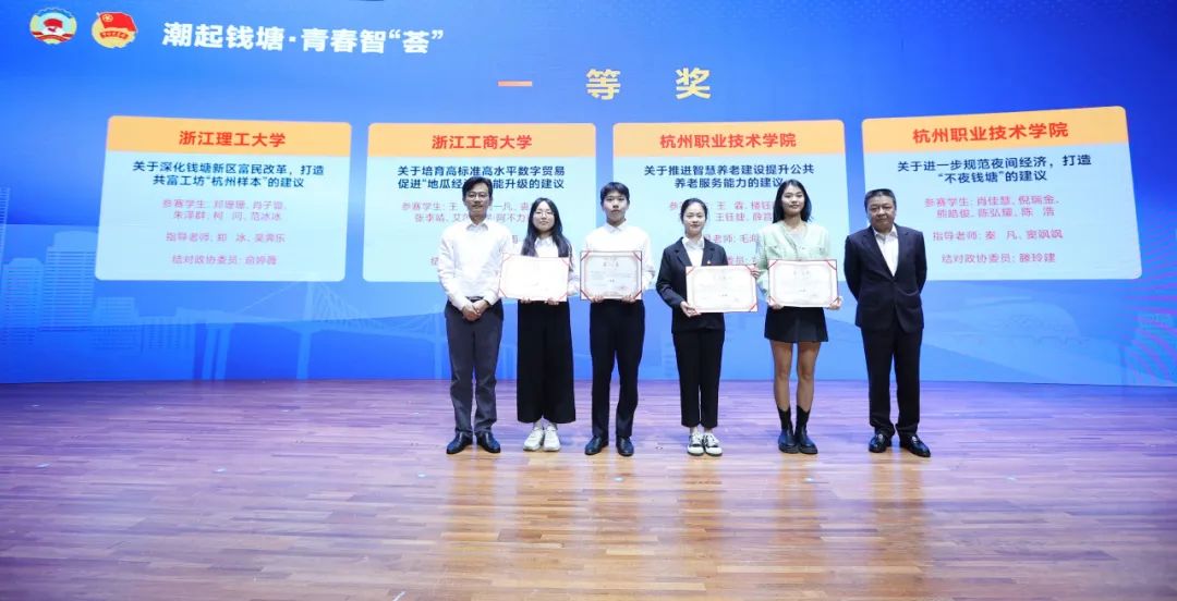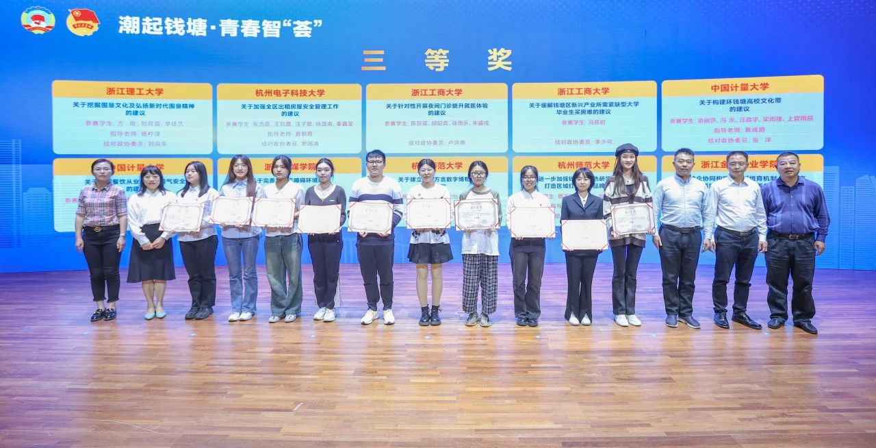 10月24日,“潮起钱塘·青春智‘荟’”高校学生模拟政协活动在钱塘区金沙湖大剧院圆满收官,来自钱塘区14所高校的学生们共提交260件学生提案作品,经过两轮专家评审,本次活动共评出优秀提案20件,现场举行了表彰仪式,校党委副书记姚珺出席活动。