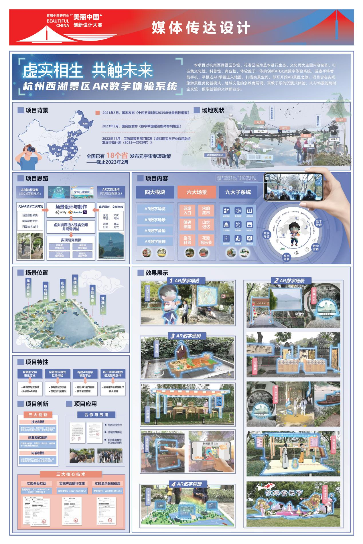11月26日,由教育部学位管理与研究生教育司指导、中国学位与研究生教育学会和中国科协青少年科技中心主办的首届中国研究生“美丽中国”创新设计大赛在杭州建德落下帷幕。首届中国研究生“美丽中国”创新设计大赛于2023年6月12日正式启动,设置有环境空间设计、服装与服饰设计、工业产品设计、媒体传达设计、建德主题设计五个不同赛道。大赛赛程历时6个多月,来自全国304所高校和科研院所的5943支团队、15559名研究生踊跃参与,参赛规模居中国研究生创新实践系列大赛16项主题赛事前三。此次大赛共有284份作品进入等级奖名单,我院麻欣瑶、胡广老师指导的研究生项目《虚实相生,共触未来一一杭州西湖景区 AR 数字体验系统》荣获全国三等奖,这也是建筑工程学院“红筑未来”AR工作室的成果。