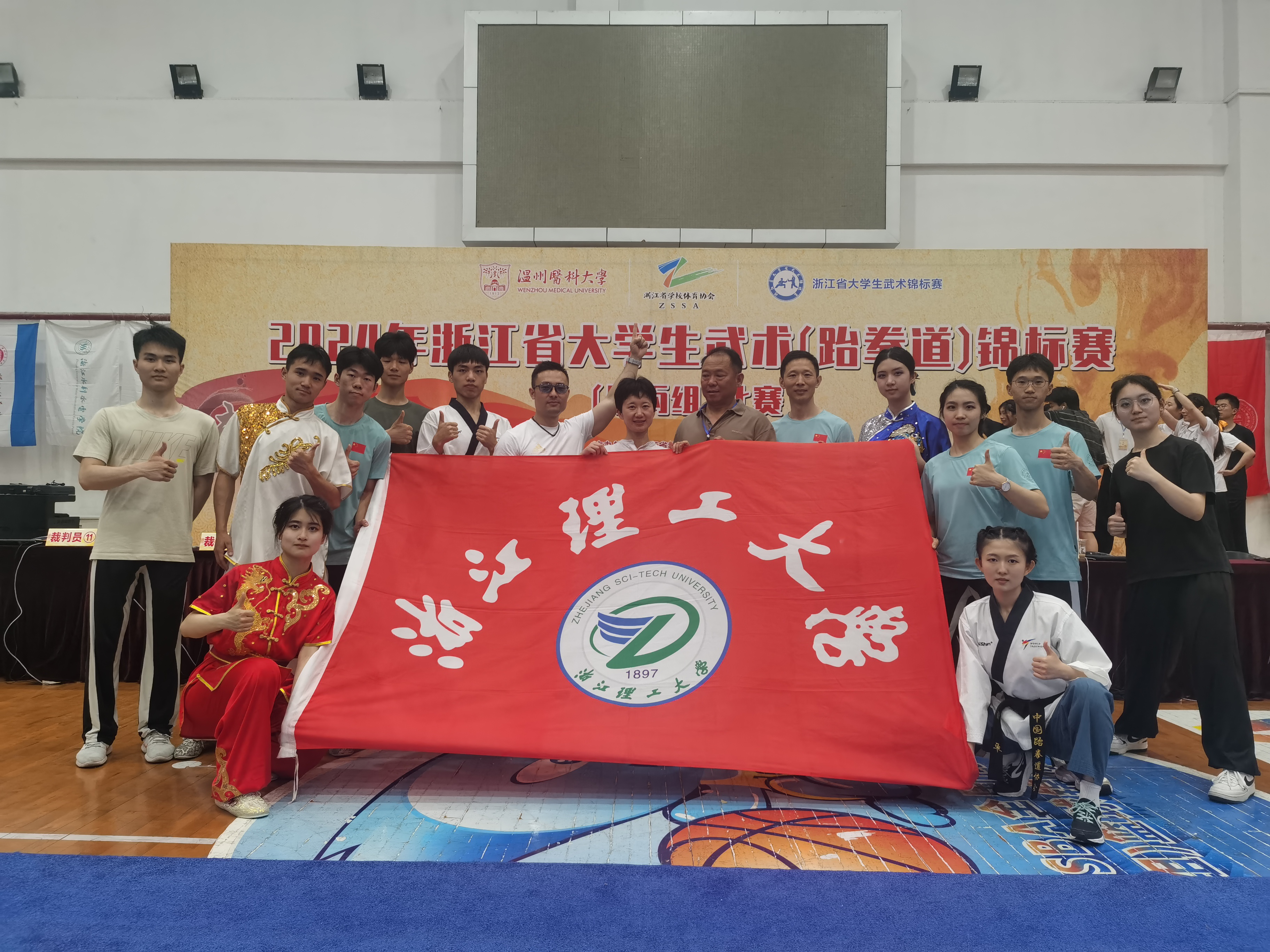 5月16日-20日,由浙江省教育厅、浙江省体育局主办,省学校体育协会执行,温州医科大学承办,大学武术分会协办的2024年浙江省大学生武术(跆拳道)锦标赛(甲丙组)在温州医科大学举行。本次大赛共有来自全省47所本科院校的58支代表队参与角逐。mk官方网站_mk(中国)代表队荣获总分第一名。我校派出曾平老师为领队,杨乃静、尹燕强、谢烽老师为教练,12名运动员的阵容参赛。