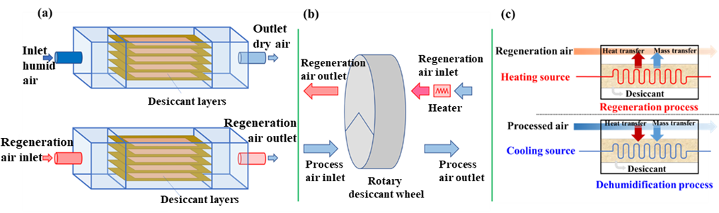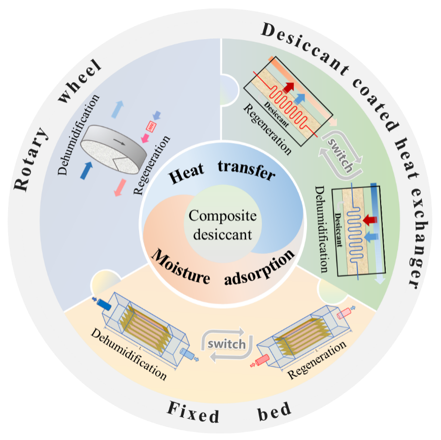 湿度在日常生活和工业生产中发挥着重要作用。高新技术的发展和节能减排的需求是当前高效除湿技术面临的挑战。吸附式除湿技术能够将温度和湿度进行独立控制并具备节能潜力,因此被认为是蒸汽压缩制冷技术的一种有前途的替代技术。对于吸附式除湿技术而言,干燥剂肩负着去除待处理空气水蒸气的重任,是优化其热湿传递性能的基础。